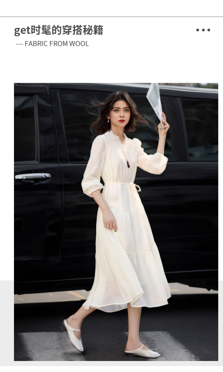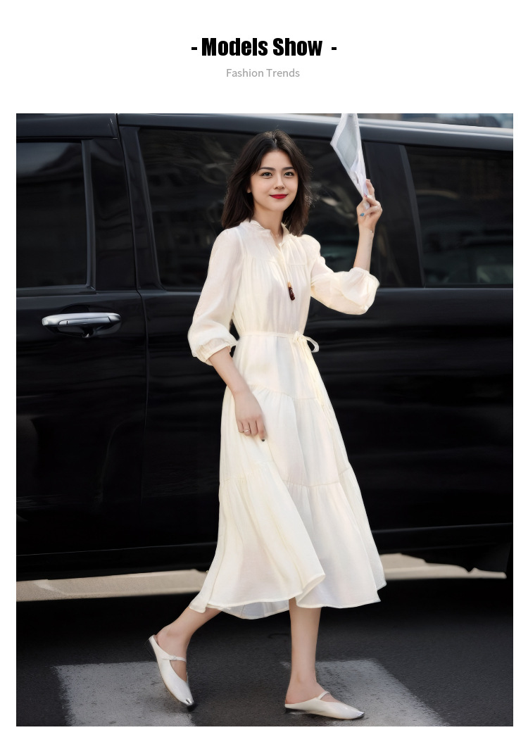 msdm572 フレンチヘップバーンスタイル V ネックレースドレス女性の 2025 夏のファッションエレガントな気質ミドル丈スカート