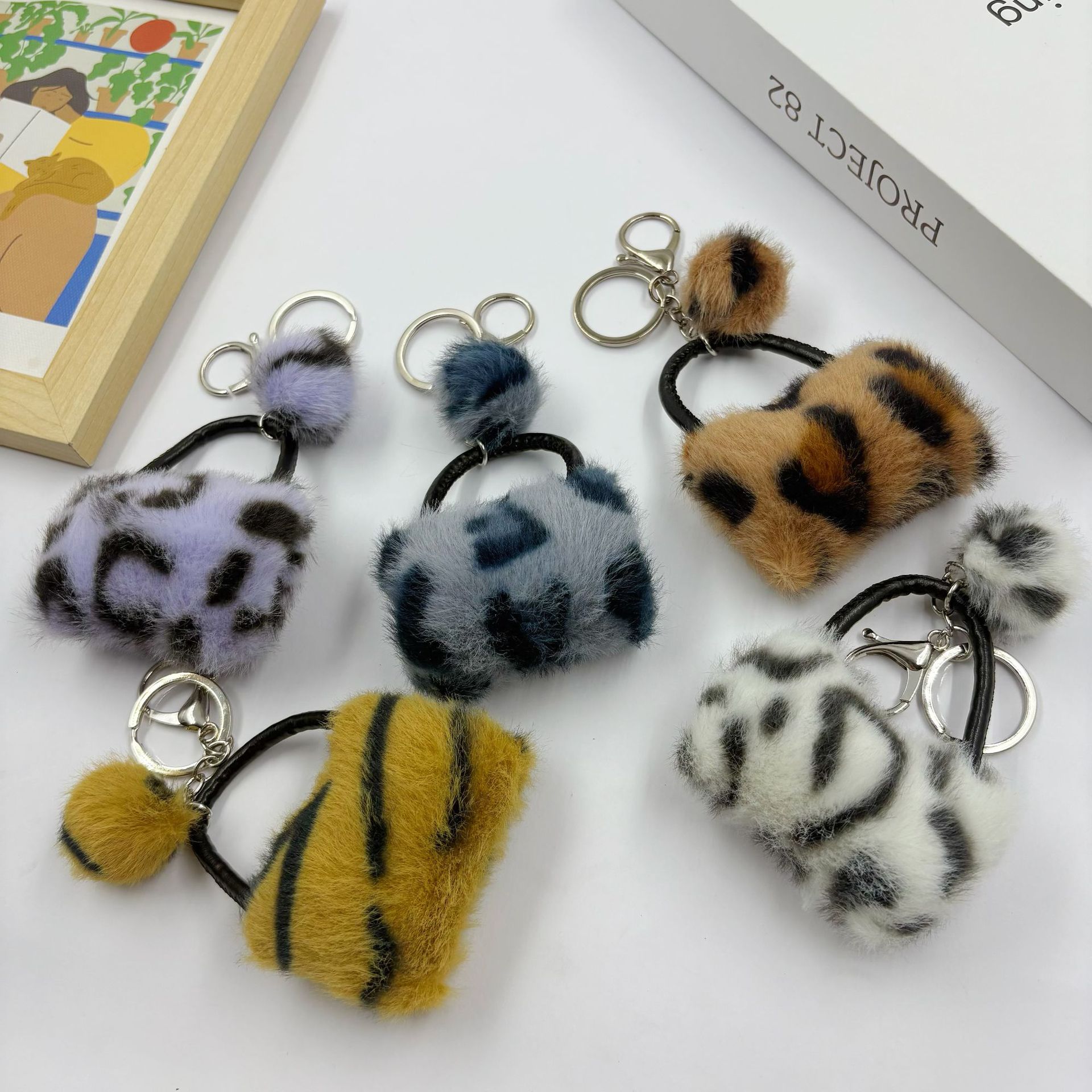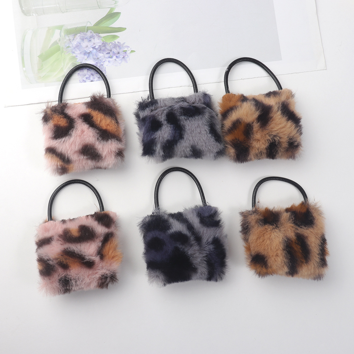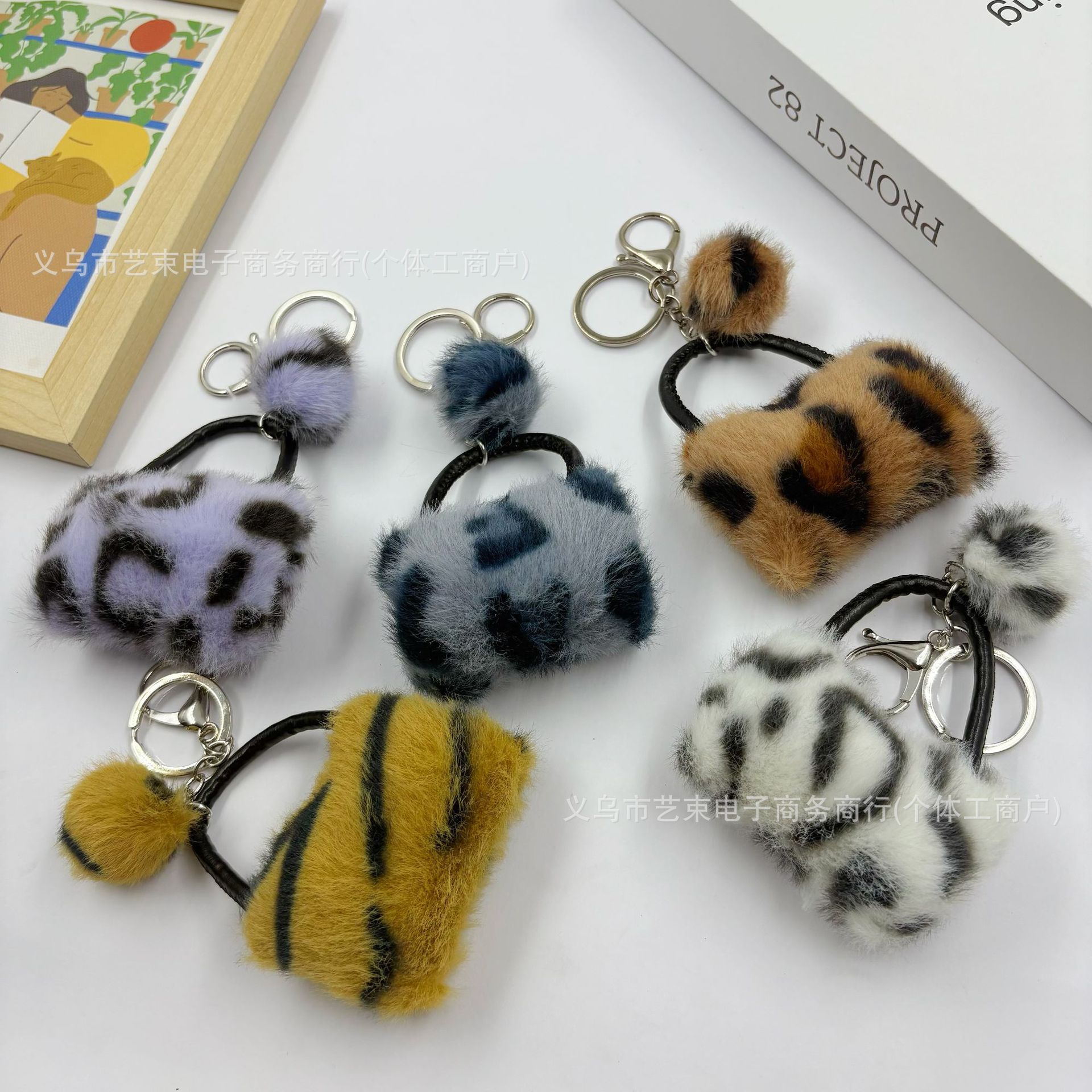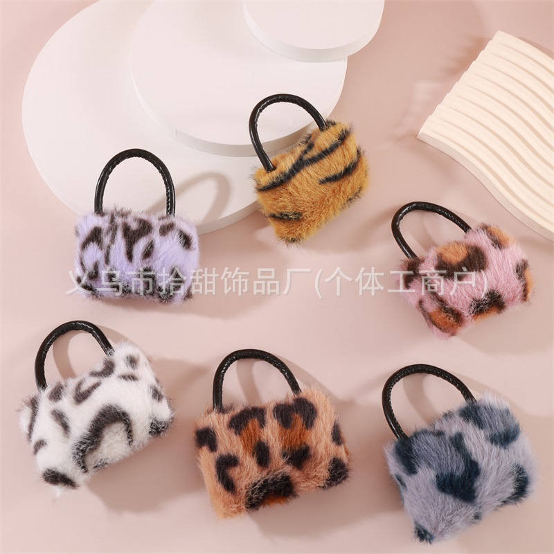 豹纹毛绒包包挂件爆款韩系创意时尚汽车小提包挂件毛球配饰钥匙扣