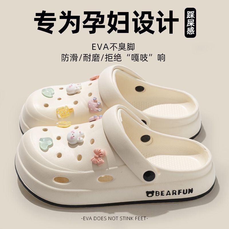 妊婦の穴の靴の女性の金の2024の新型の夏の外は厚い底を着て糞を踏んで感じます。