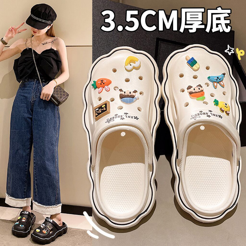穴の靴の女性の金の2024の新型の夏の外は厚い底を着て糞を踏んで感じます。