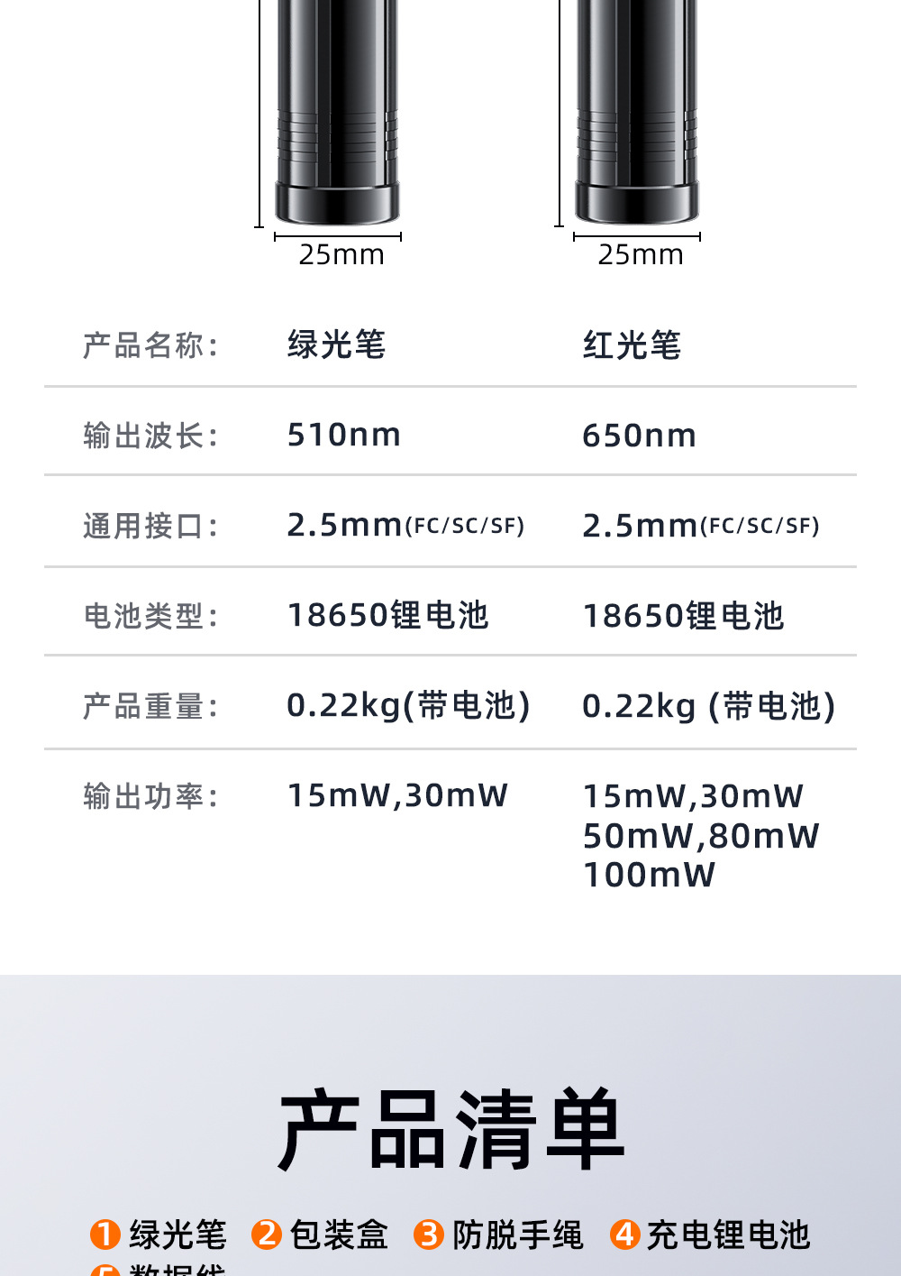 1-100公里光纤红光笔打光笔通光笔红光源10/20/30/50/60/80/100MW