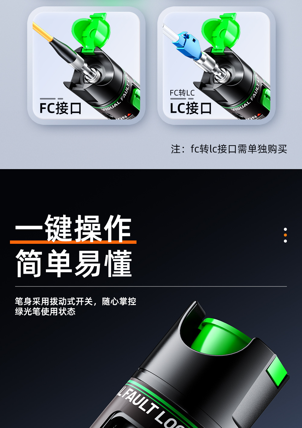 【クロスボーダー新製品】充電緑光ファイバペン光式赤光源光ファイバテストペン光ペン30キロ