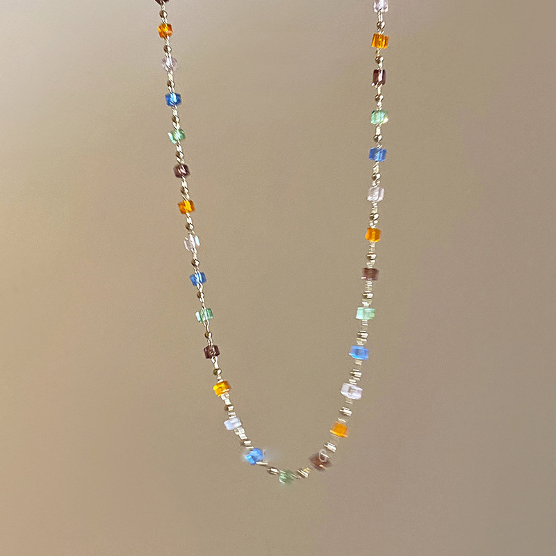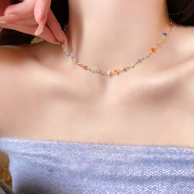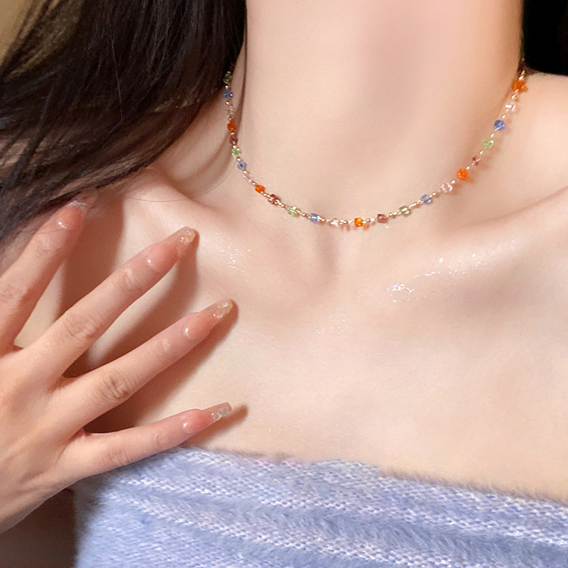 彩色水晶串珠项链女夏季年新款choker颈链轻奢小众设计锁骨链