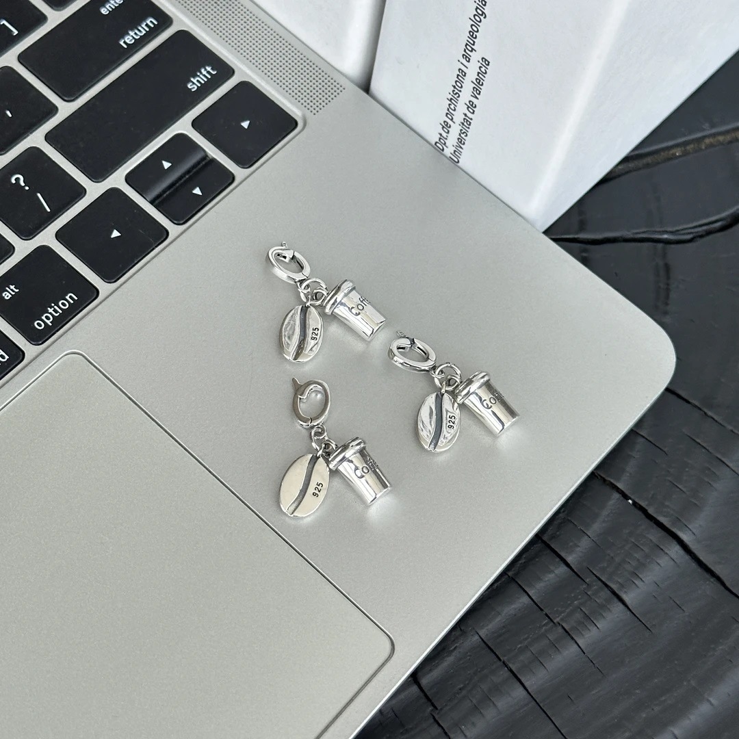 全体 S925 スターリングシルバーコーヒーカップコーヒー豆ペンダント女性のためのシンプルなレトロファッショナブルな DIY ユニバーサルバックル多用途ネックレス