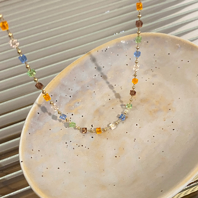 カラフルなクリスタルビーズネックレス レディース 夏の新作 人気チョーカーネックレス アクセサリー ライトラグジュアリー ニッチ鎖骨チェーン