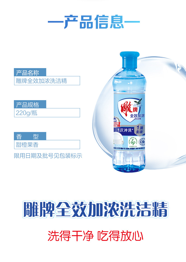 雕牌洗洁精220g家用宿舍小瓶不伤手去油洗碗精全效洗涤剂整箱量批