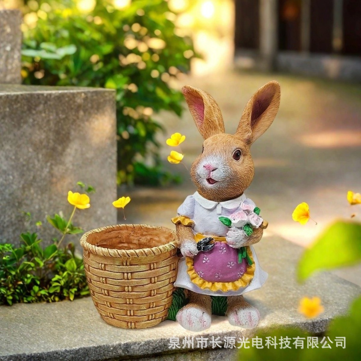 国境を越えた屋外庭園のウサギがかごに座って花園装飾景観灯幼稚園の芝生の小夜灯の現物を飾る