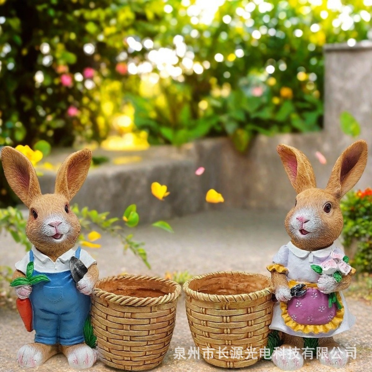 国境を越えた新しいウサギの植木鉢の置物花園庭園装飾樹脂工芸品窓辺ミクロ盆栽イースター