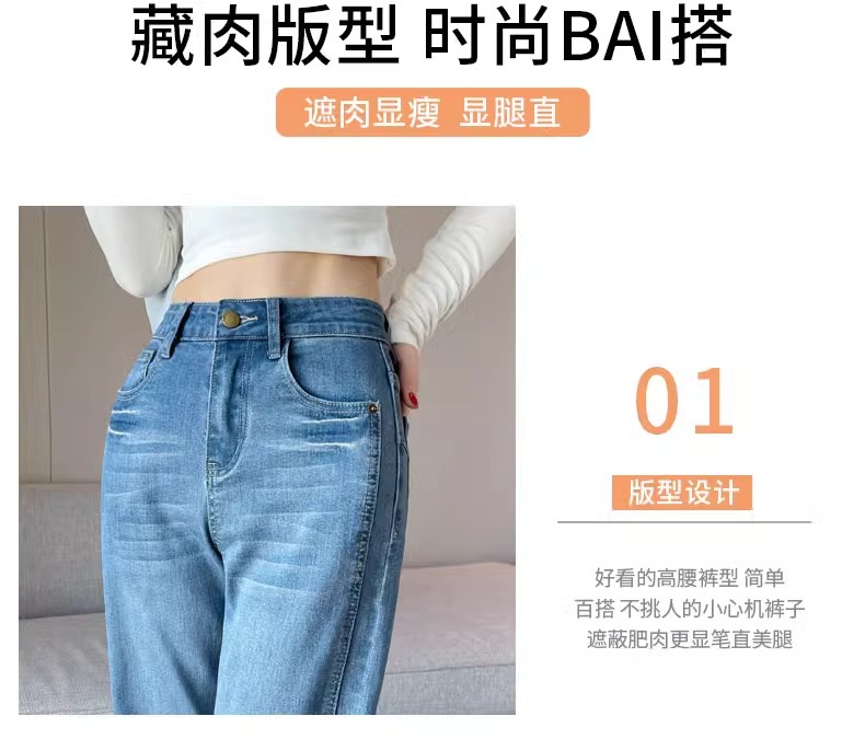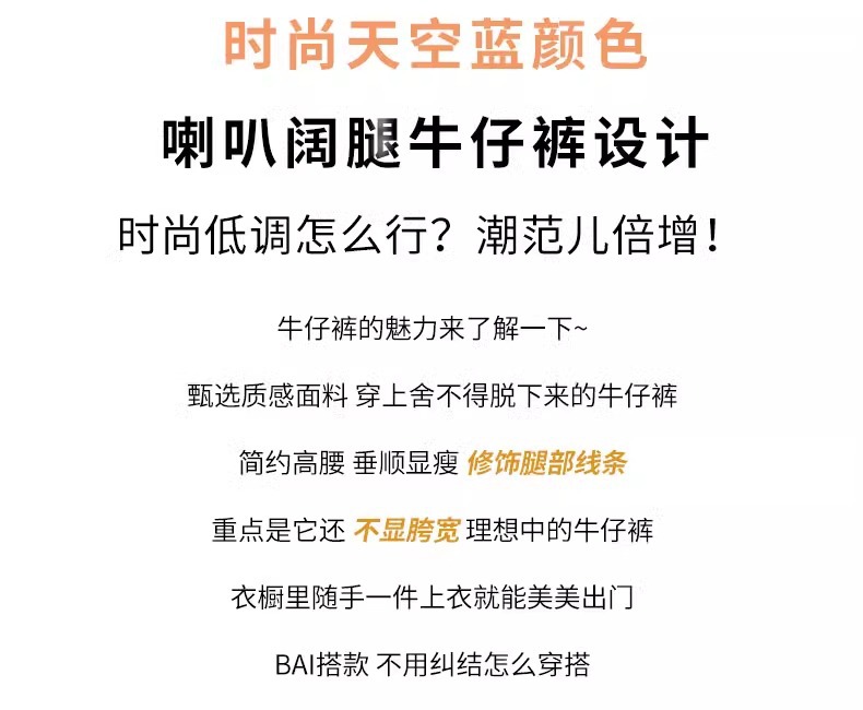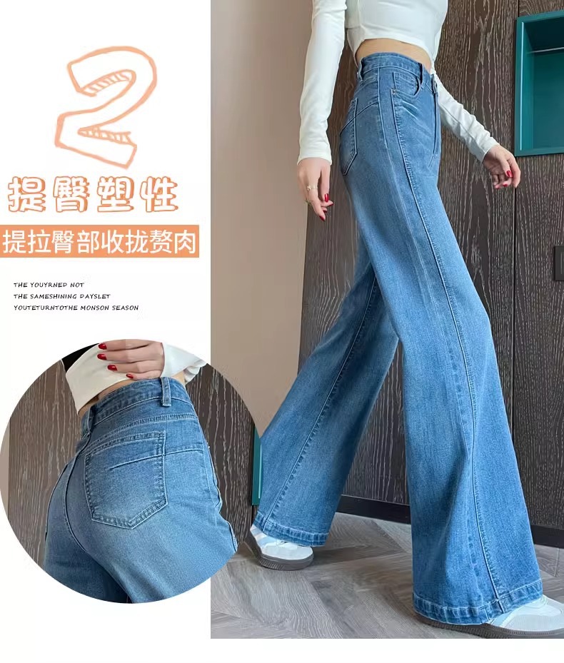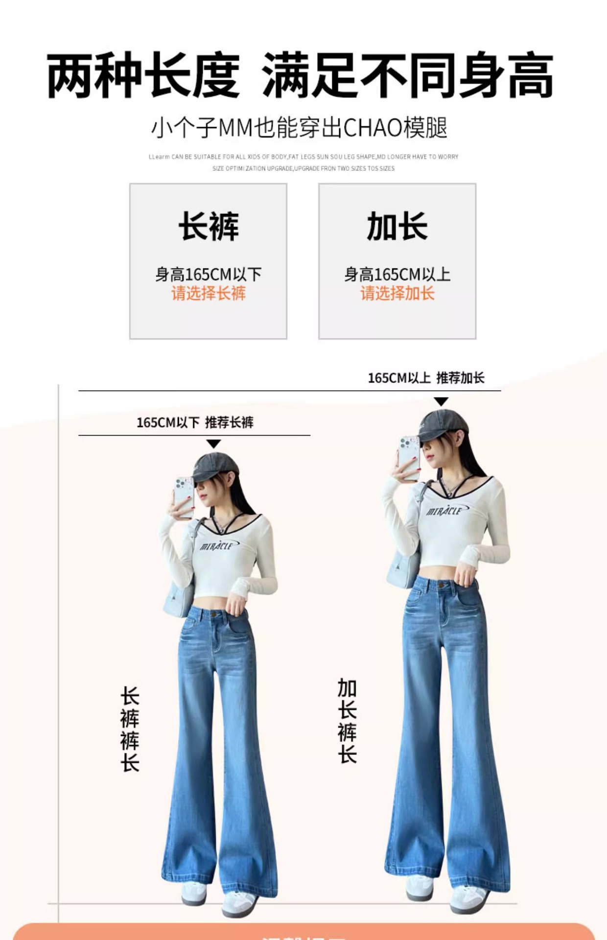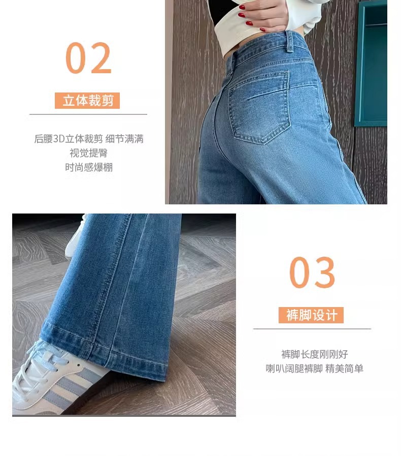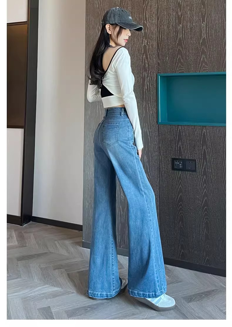 双扣高腰微喇牛仔裤女2025秋季弹力宽版遮肉遮腿型阔腿大喇叭裤子