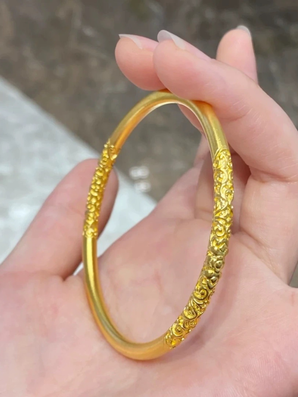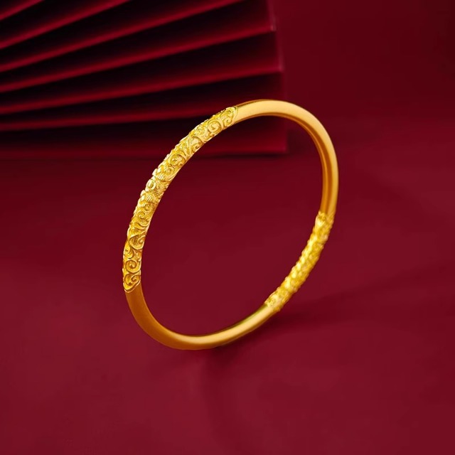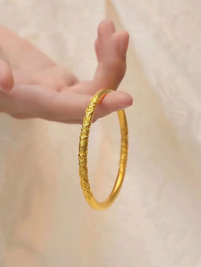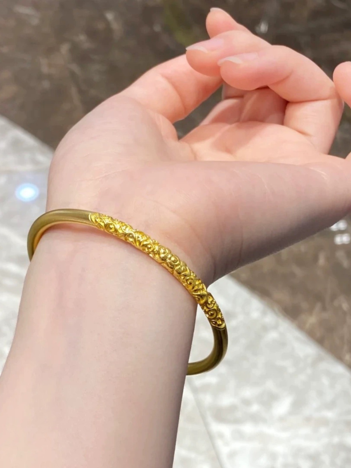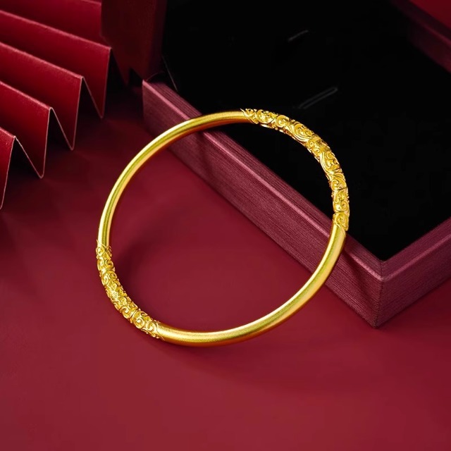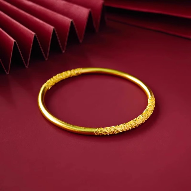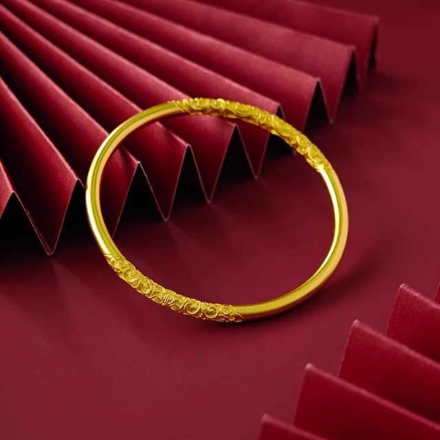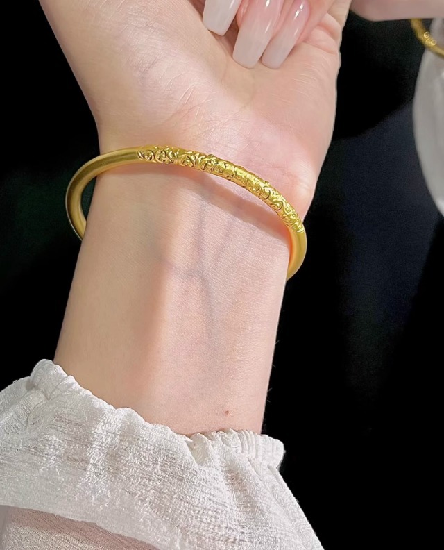 深センの金メッキ銀メーカー、古代の伝統を受け継ぐプレーンサークル純銀999ブレスレット、女性用中空ブレスレット、色あせなし、無料