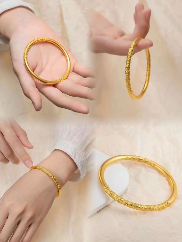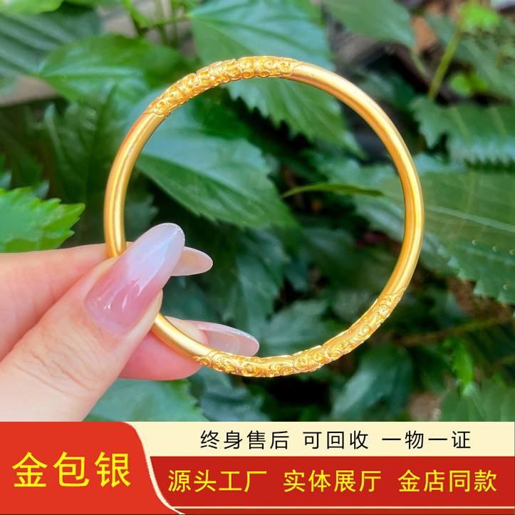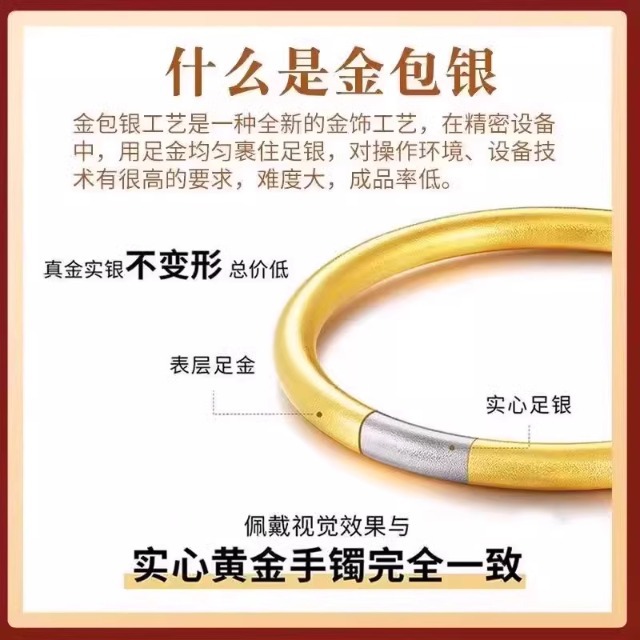 深セン金包銀工場古法タイヤブレスレット女子足金包足銀伝承素輪ブレスレット震え音起爆金