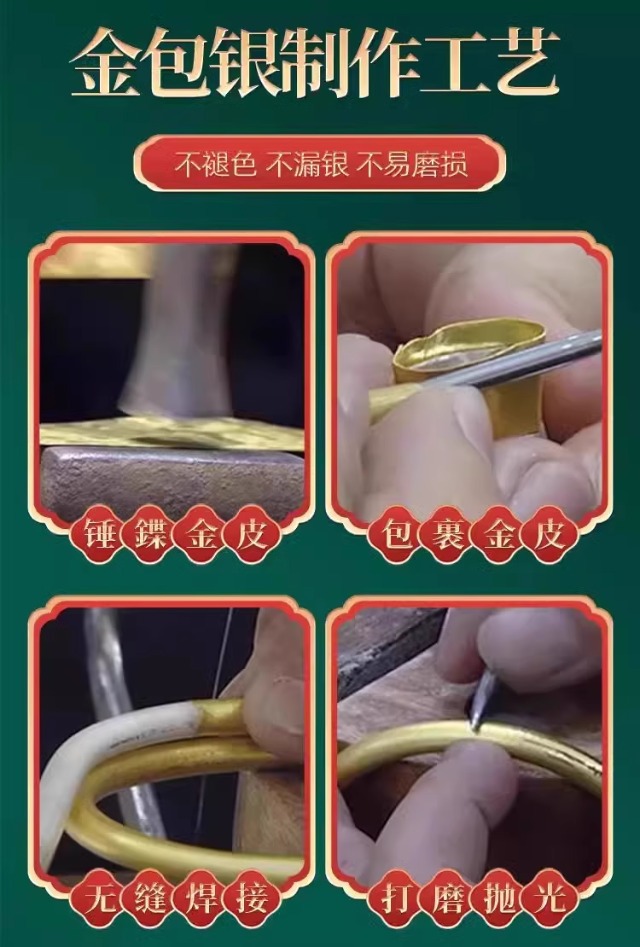 金包銀ブレスレット工場直販素輪25グラム足銀閉口ジュエリー純銀震え音紅書水貝同金