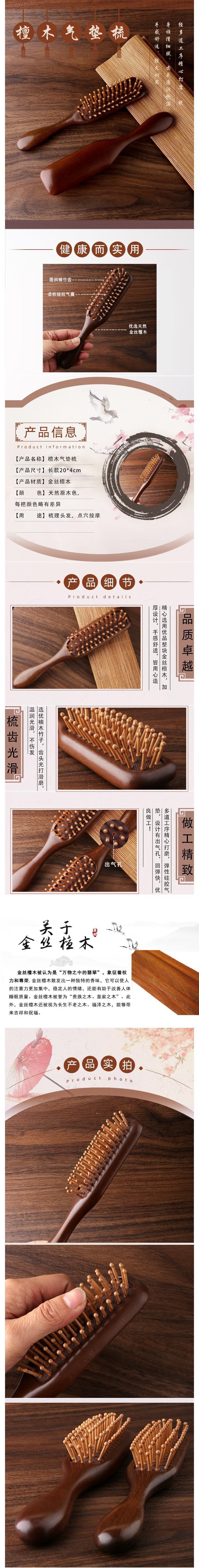 檀木气垫梳子防静电蓬松按摩头部经络梳家用女士专用气囊木梳代发