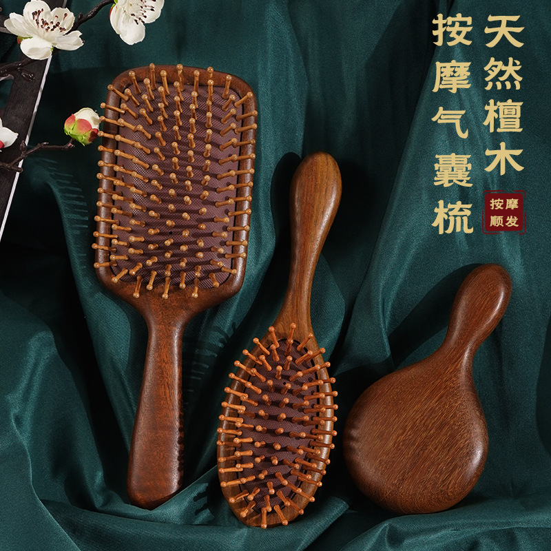 狭いエアマット櫛マッサージエアバッグ櫛頭部金糸檀木実木櫛携帯美髪順髪櫛家庭用卸売り