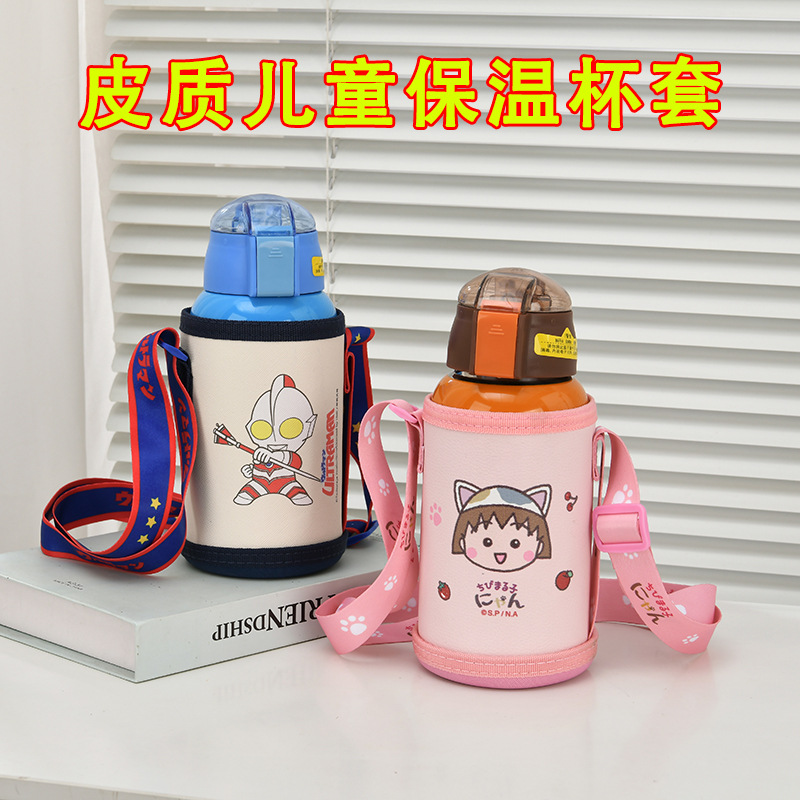 子供用魔法瓶カップカバー漫画ポータブル学生斜めストラップウォーターカップカバー魔法瓶ケトルカバー落下防止保護カバー