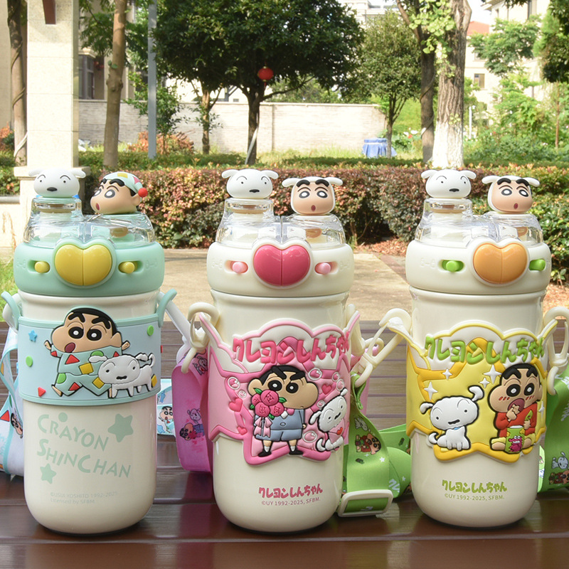 クレヨンしんちゃん 子供用魔法瓶カップ 女の子用 かわいい学生ケトル 持ち運び用ストロー 直飲みカップ