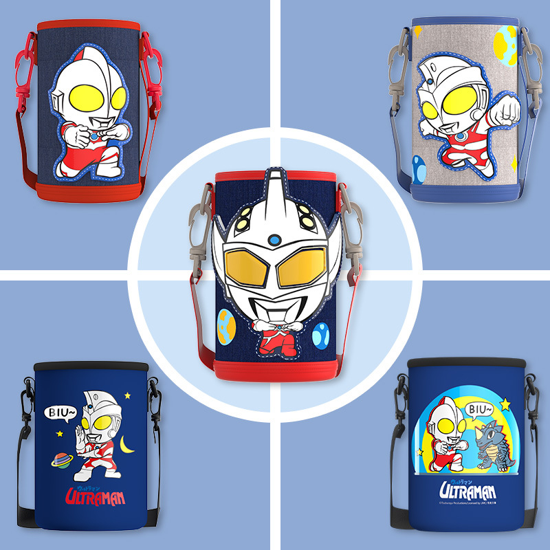 ウルトラマン子供保温カップカバー通用厚手の携帯カップカバーを斜めにショルダーして、転倒防止保護カバーを持っています。