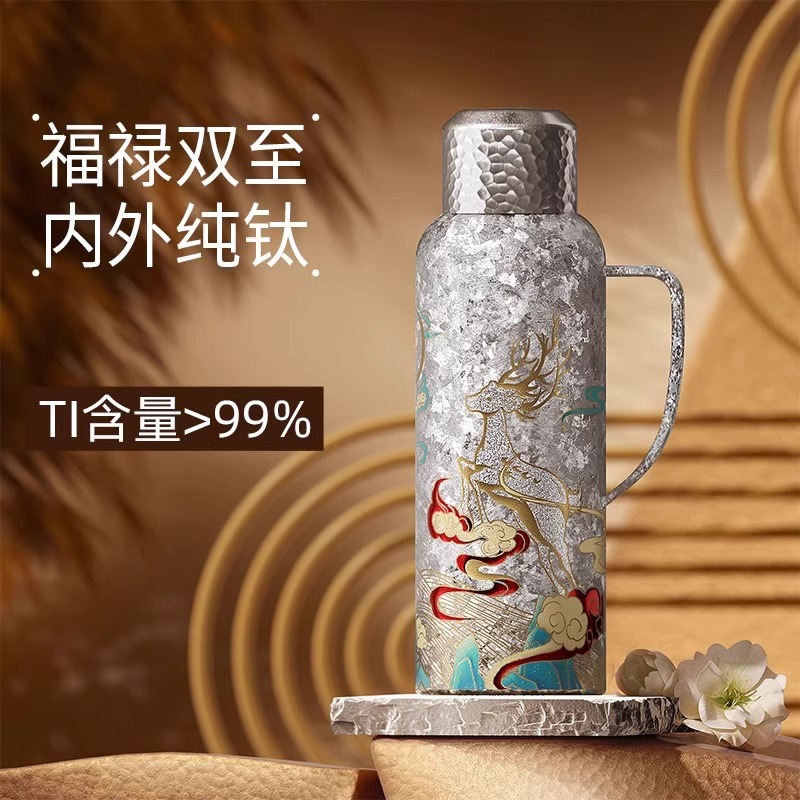 纯钛保温杯高颜值里外纯钛材质女神杯商务办公杯联系便捷纯钛水杯