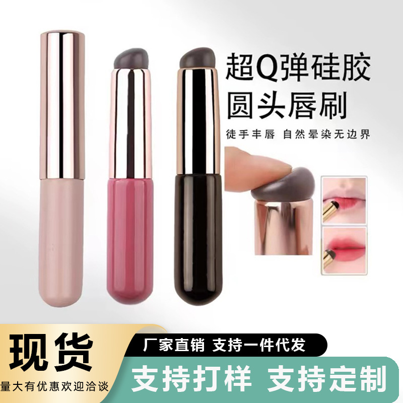 カバー付きシリコンリップブラシ、ミニラウンドヘッドQソフト防塵ポータブルコンシーラーブラシ、多機能スマッジリップスティックブラシ、メイクアップブラシ