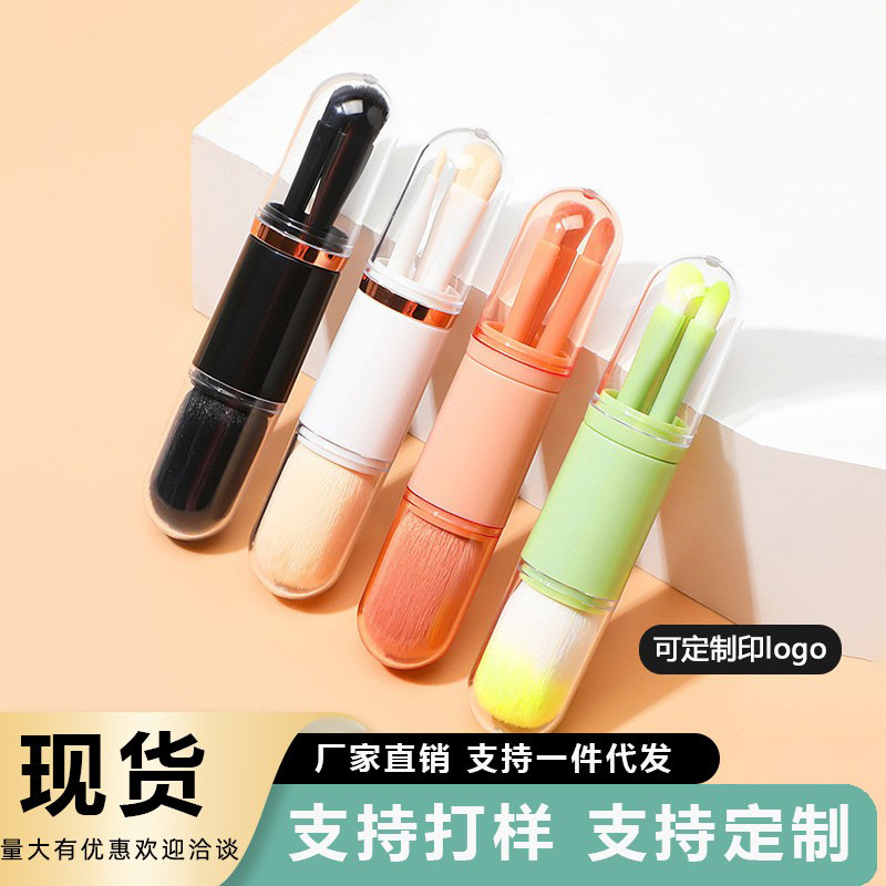伸縮化粧ブラシカバー付き携帯四合一化粧ブラシブラシアイシャドウブラシミニ多機能化粧ブラシ