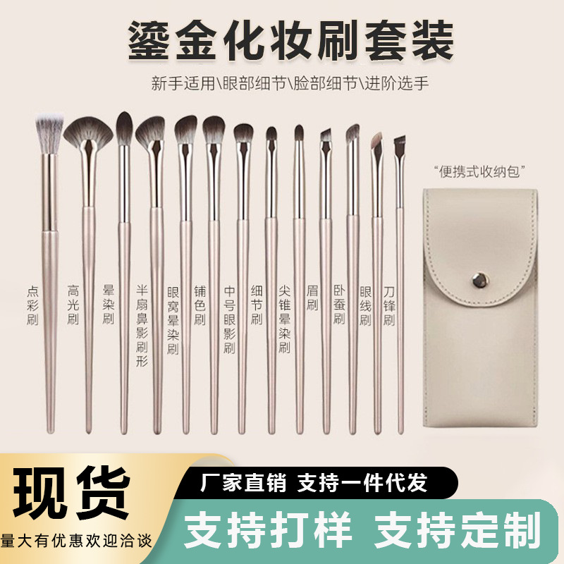 15本の金化粧ブラシセット滄州13本のアイシャドウブラシセット頬紅ブラシ携帯化粧ブラシ美化粧ツール