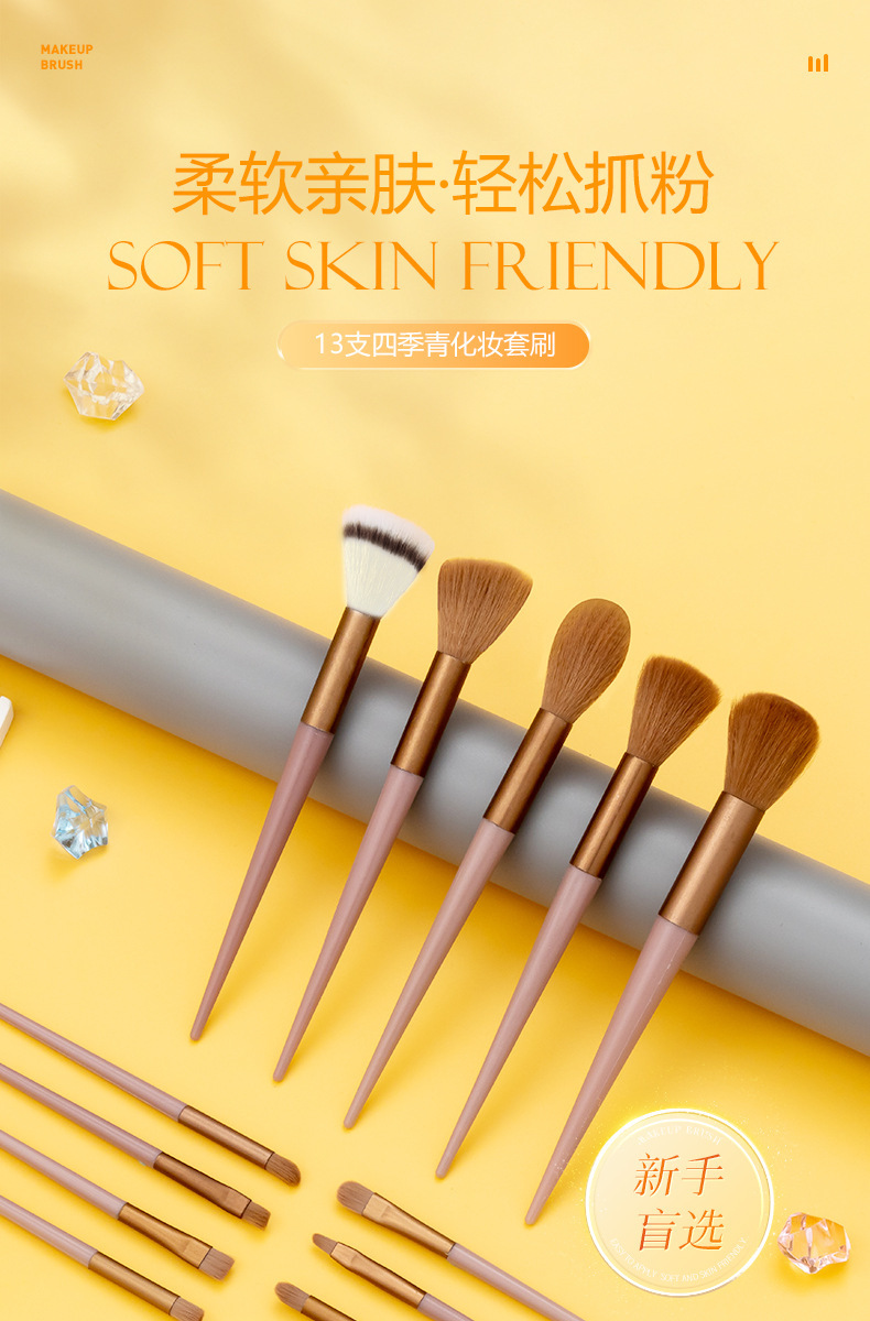13本の四季青化粧ブラシセット、柔らかい毛のアイシャドウブラシ、パウダーブラシ、チークブラシ、コンシーラーブラシ、化粧ブラシ一式
