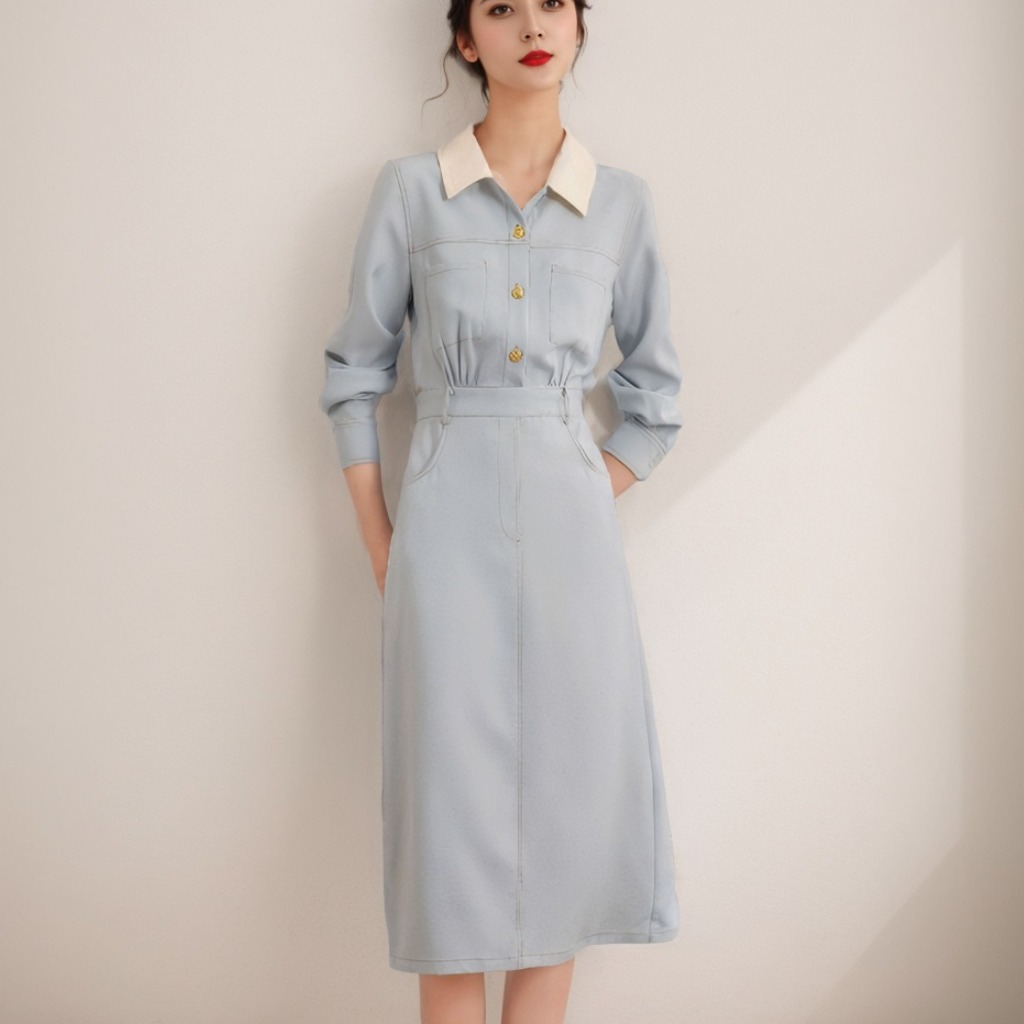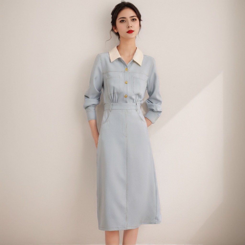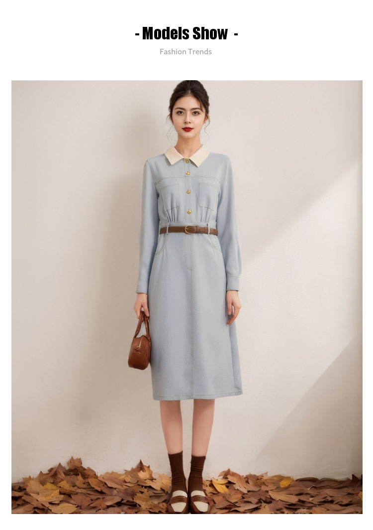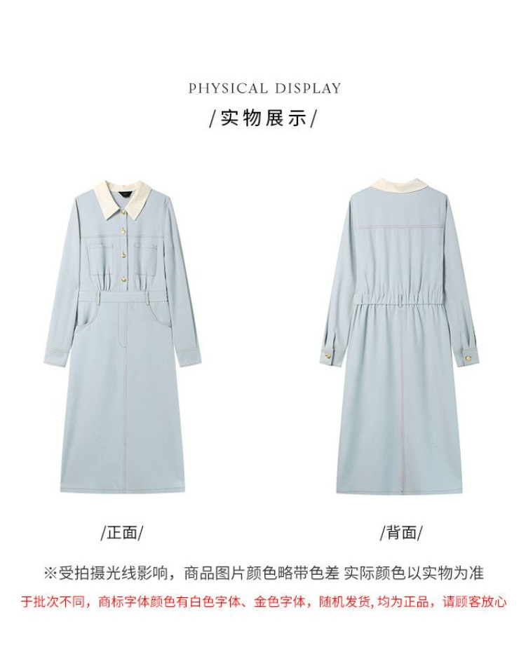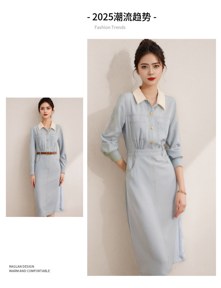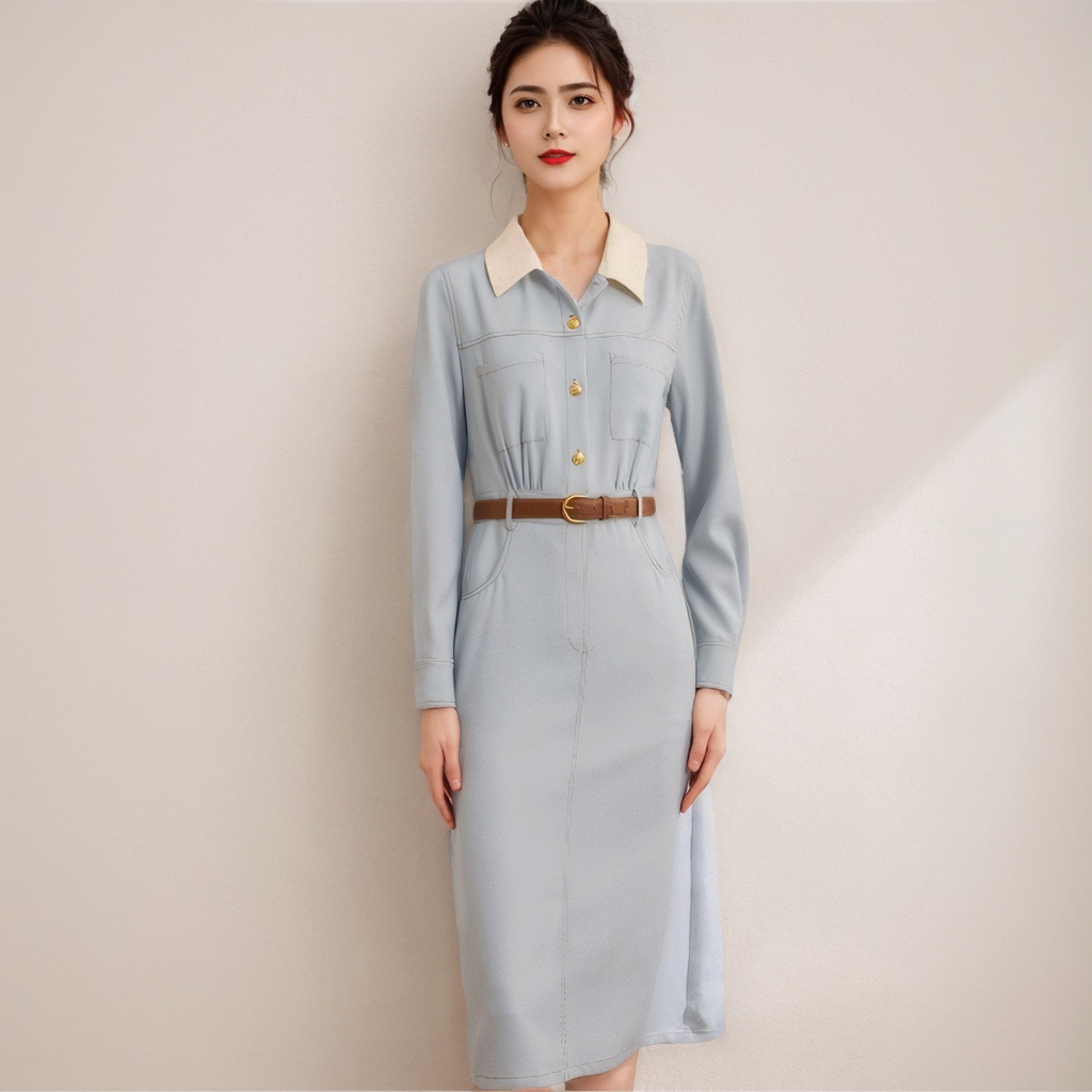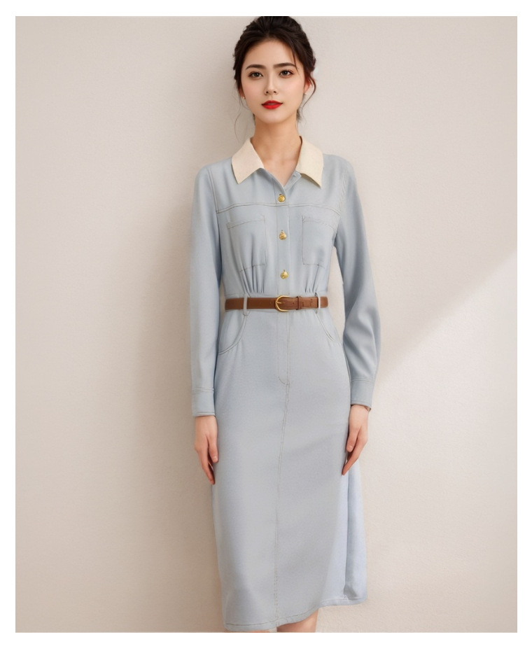 Mnm5019韓国版ベルトPOLO襟ワンピース女性2025春新作気質修身衝突シャツスカート