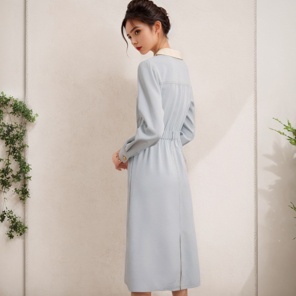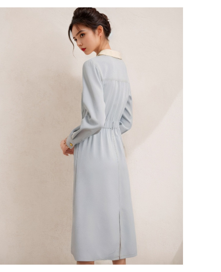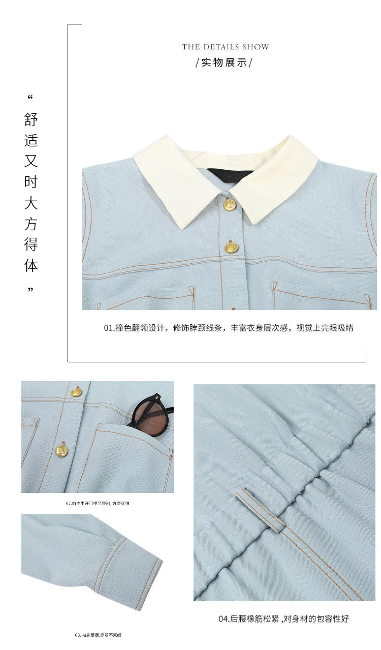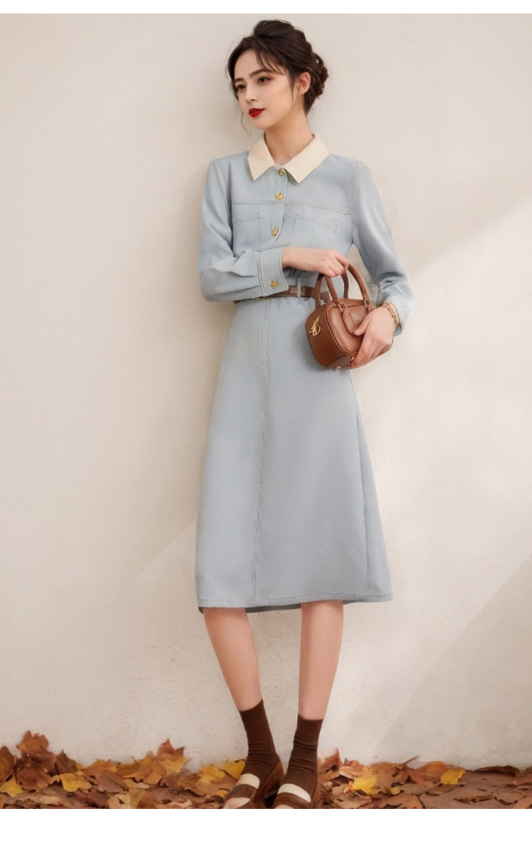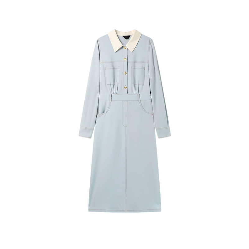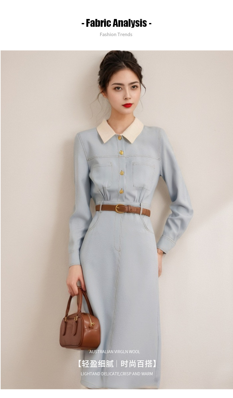 Mnm5019韓国版ベルトPOLO襟ワンピース女性2025春新作気質修身衝突シャツスカート