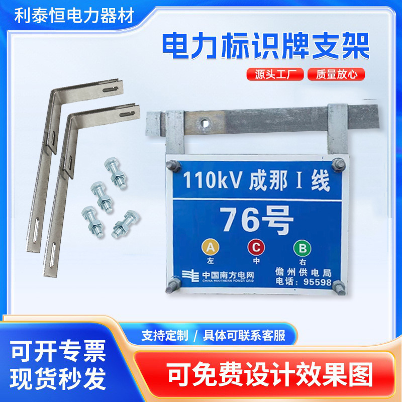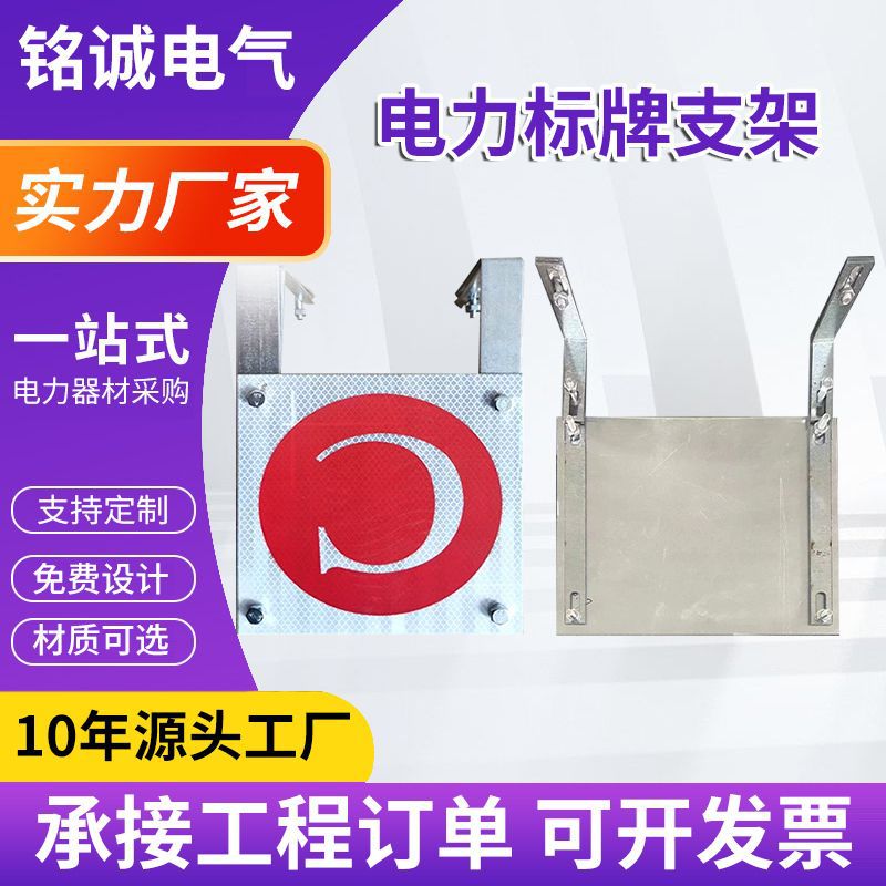 电力标牌支架镀锌铁塔T型L型警示牌不锈钢铝板搪瓷电力杆号相序牌
