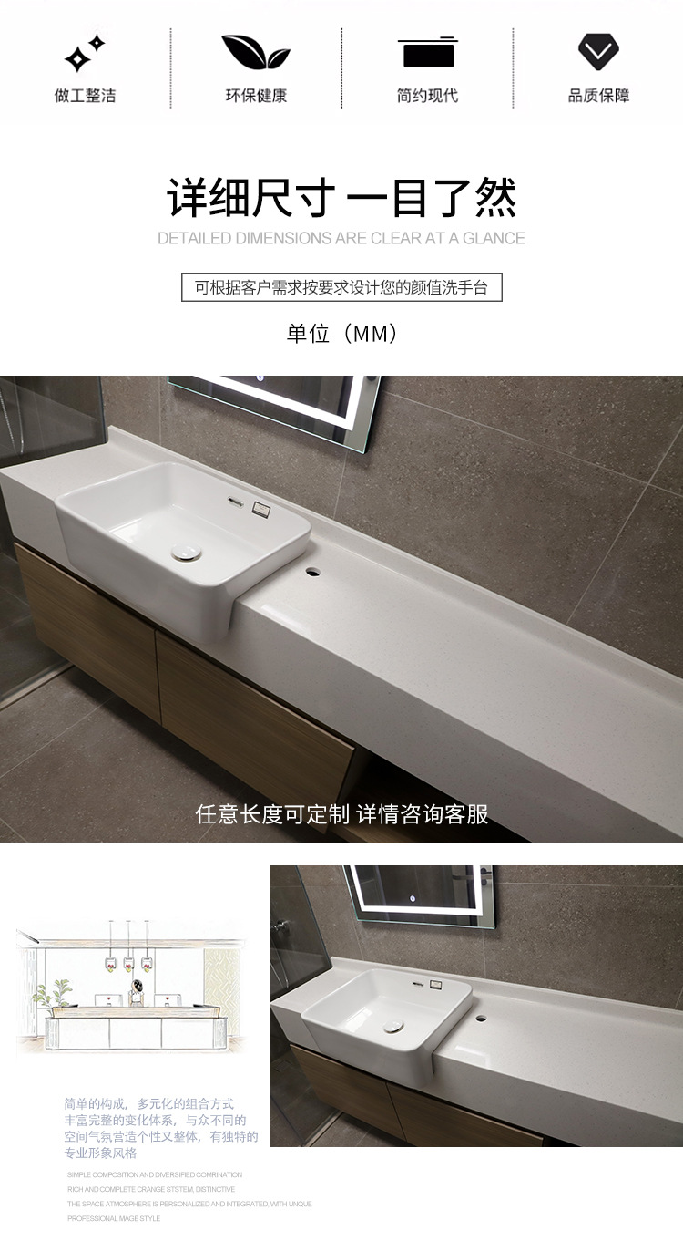 深セン宇西人造石白色シングル洗面台ホテル浴室洗面台壁掛け式半埋め込み洗面器