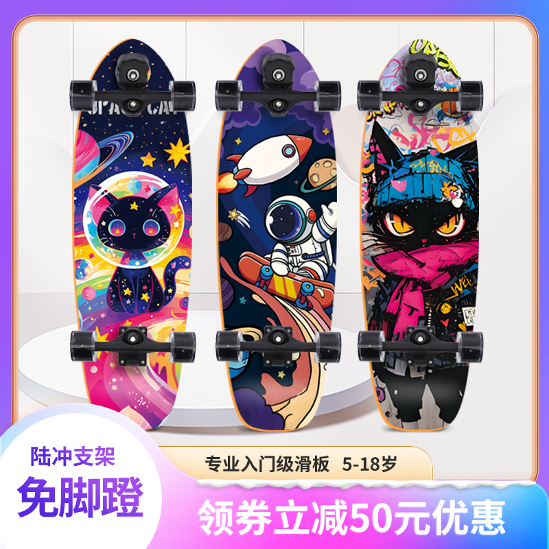 希昂陆地冲浪板儿童滑板男女生初学者免蹬地稳定成人青少年路冲板