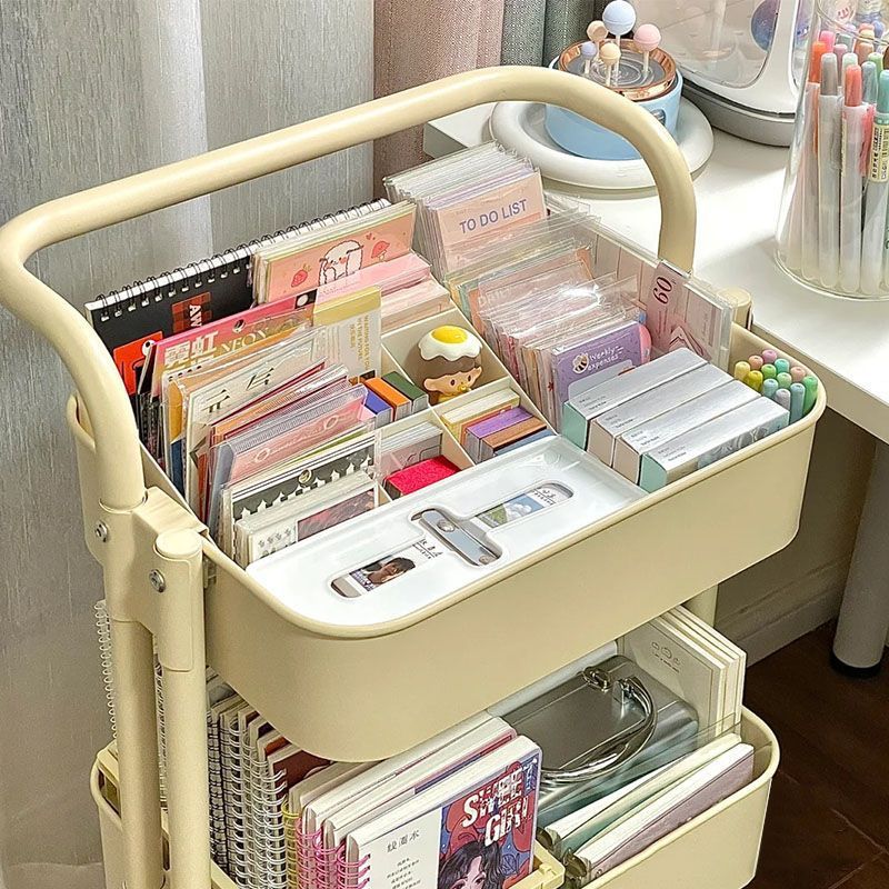 小推车置物架家用洞洞板奶油风落地抽屉柜可移动玩具零食收纳架子