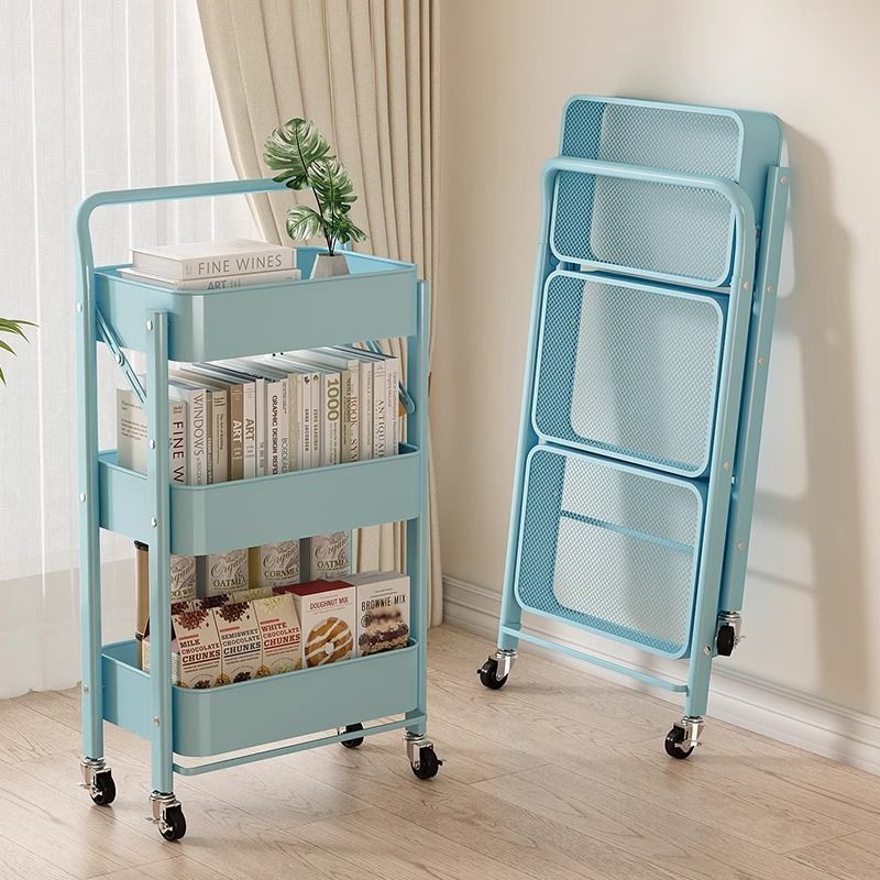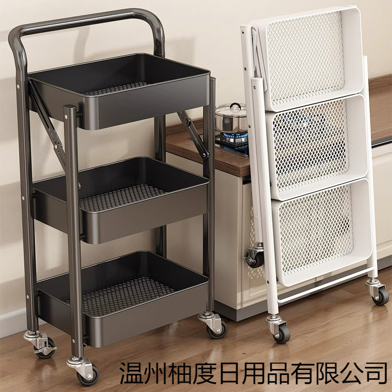 新款碳钢小推车折叠多层储物架置物架可移动厨房卧室零食收纳推车
