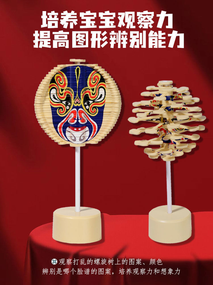 发光旋转京剧脸谱旋转棒棒糖斐波那契螺旋树解压益智玩具桌面摆件