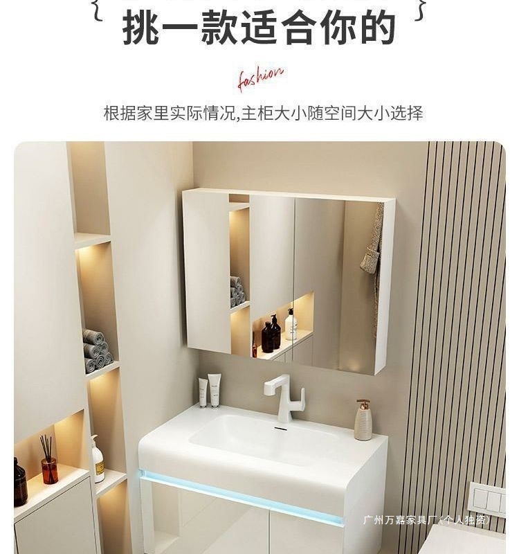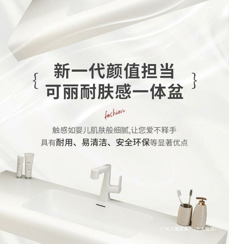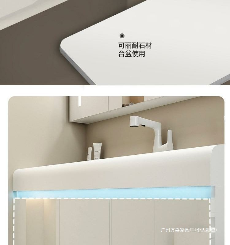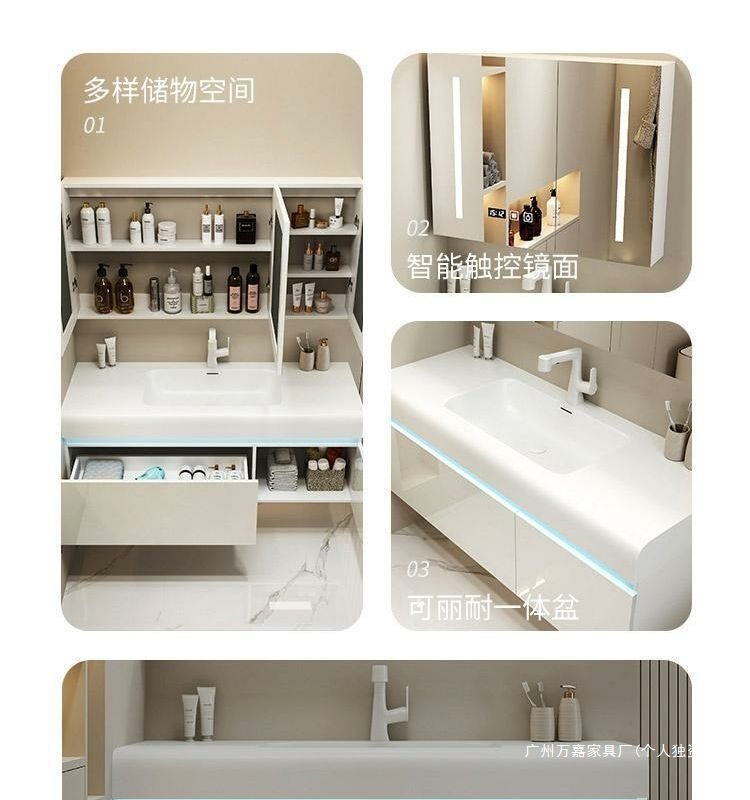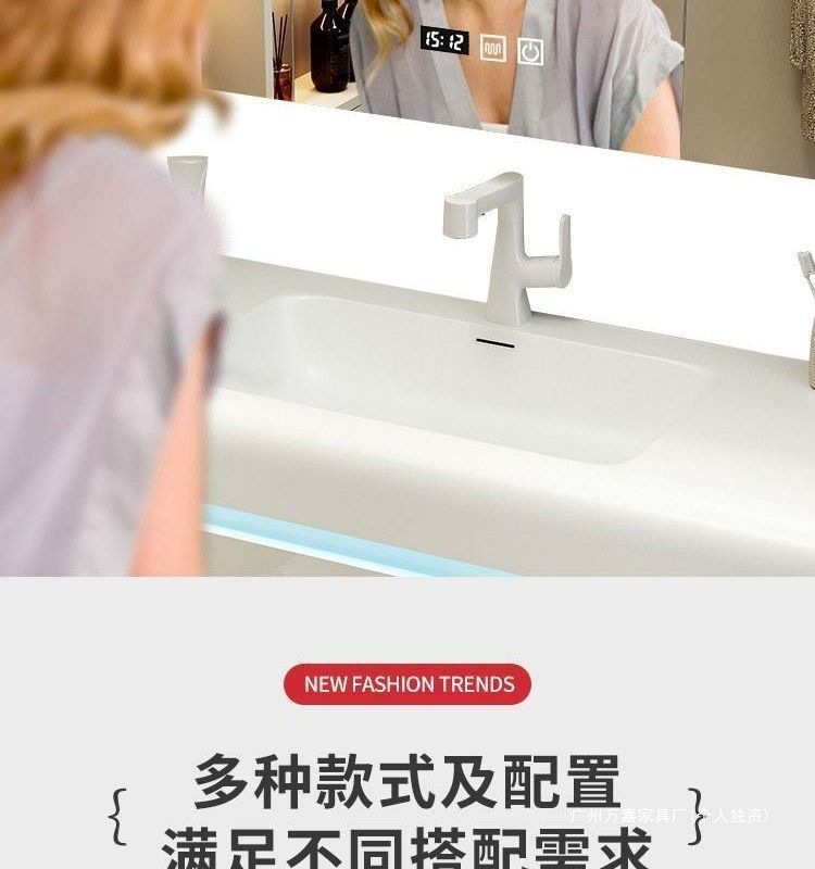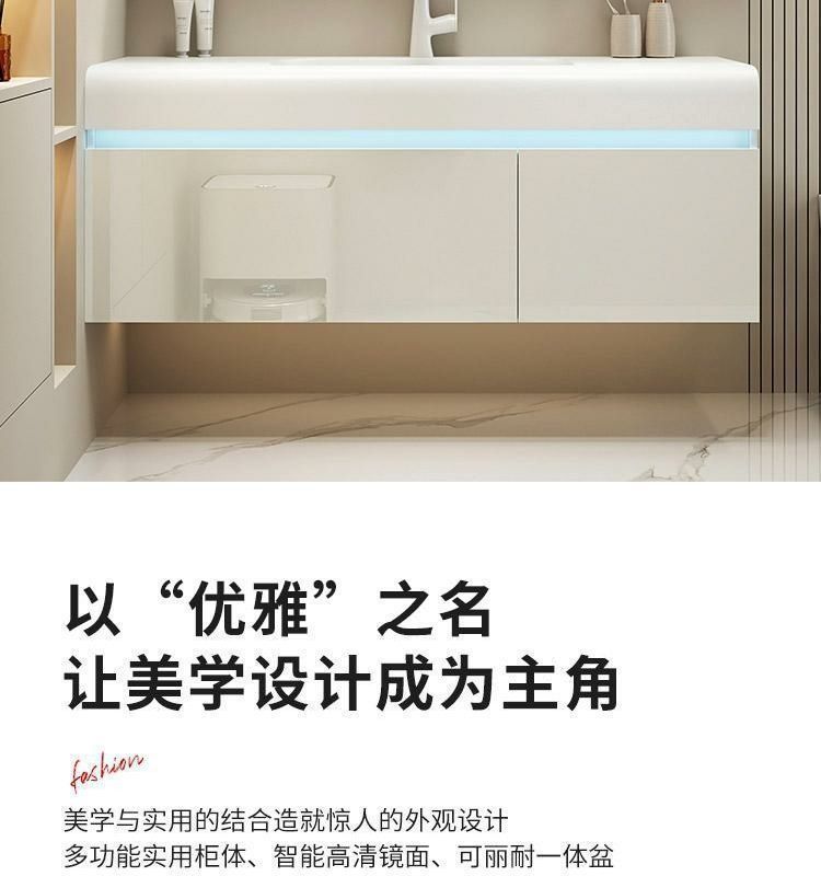 轻奢可丽耐肤感一体盆简约智能浴室柜组合卫生间一体式浴柜洗漱台