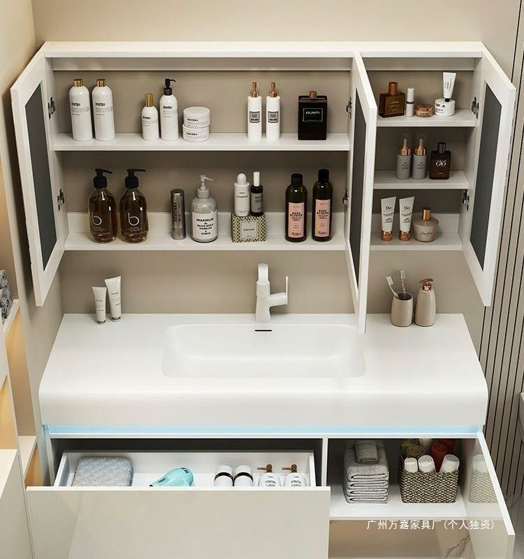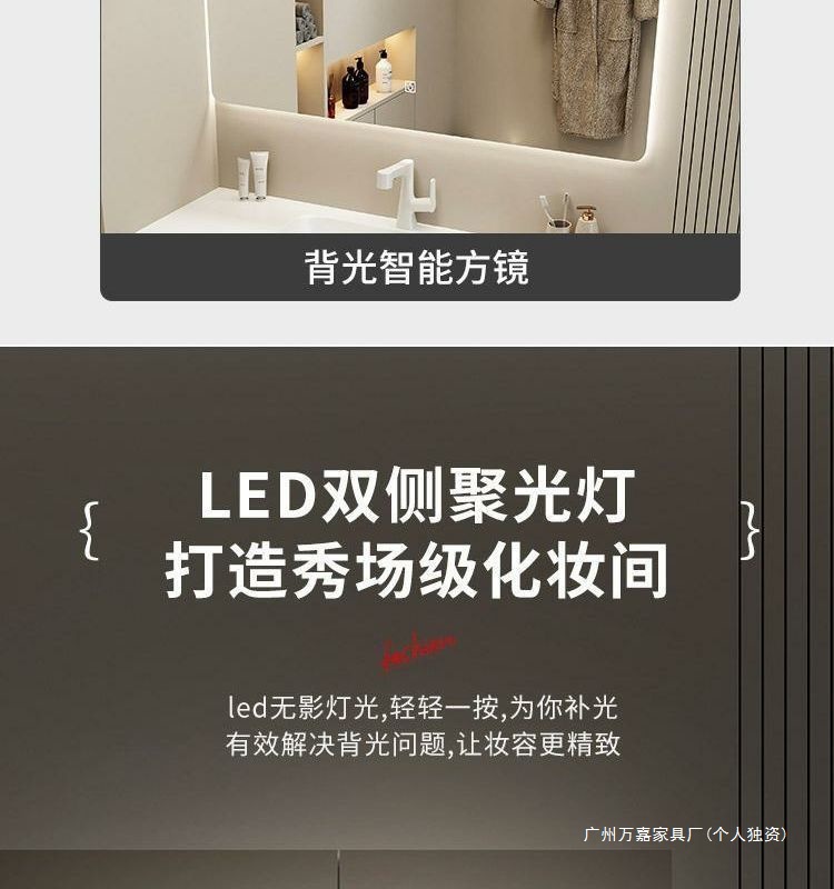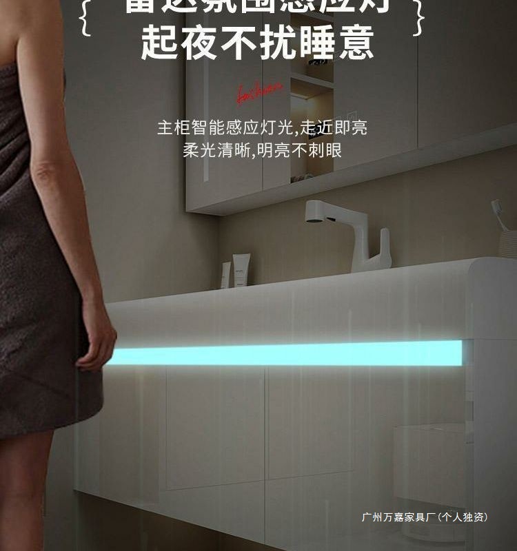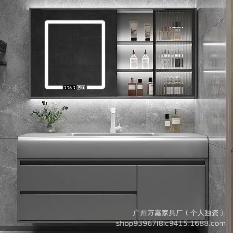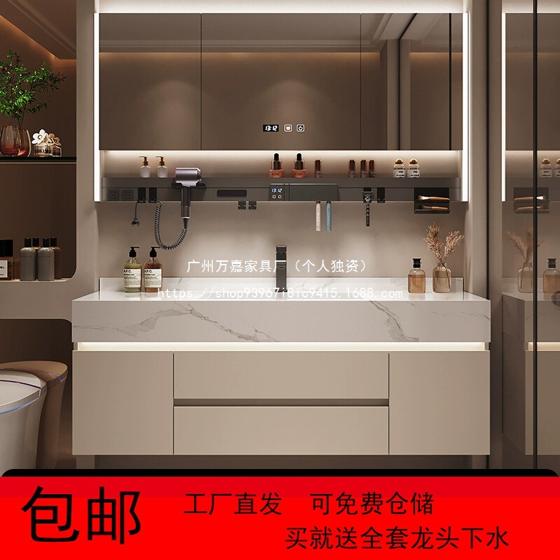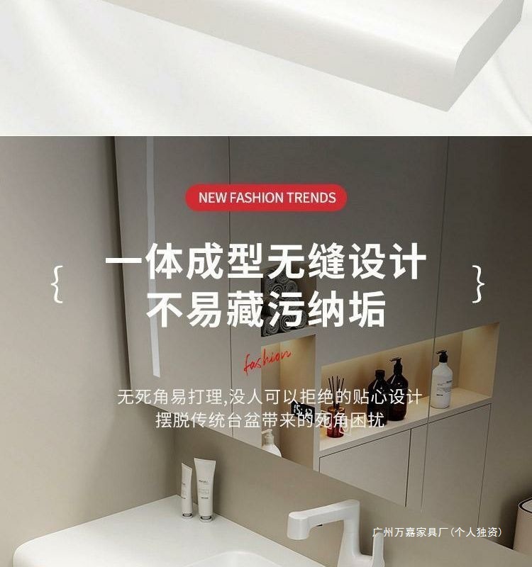 轻奢可丽耐肤感一体盆简约智能浴室柜组合卫生间一体式浴柜洗漱台