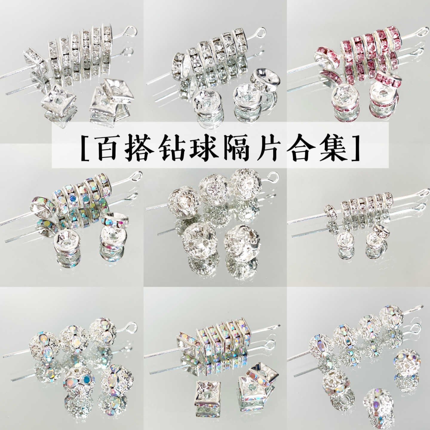 ダイヤモンド合金スペーサービーズ手作りビーズdiyブレスレットネックレス材料シルバー花托アクセサリーアクセサリー