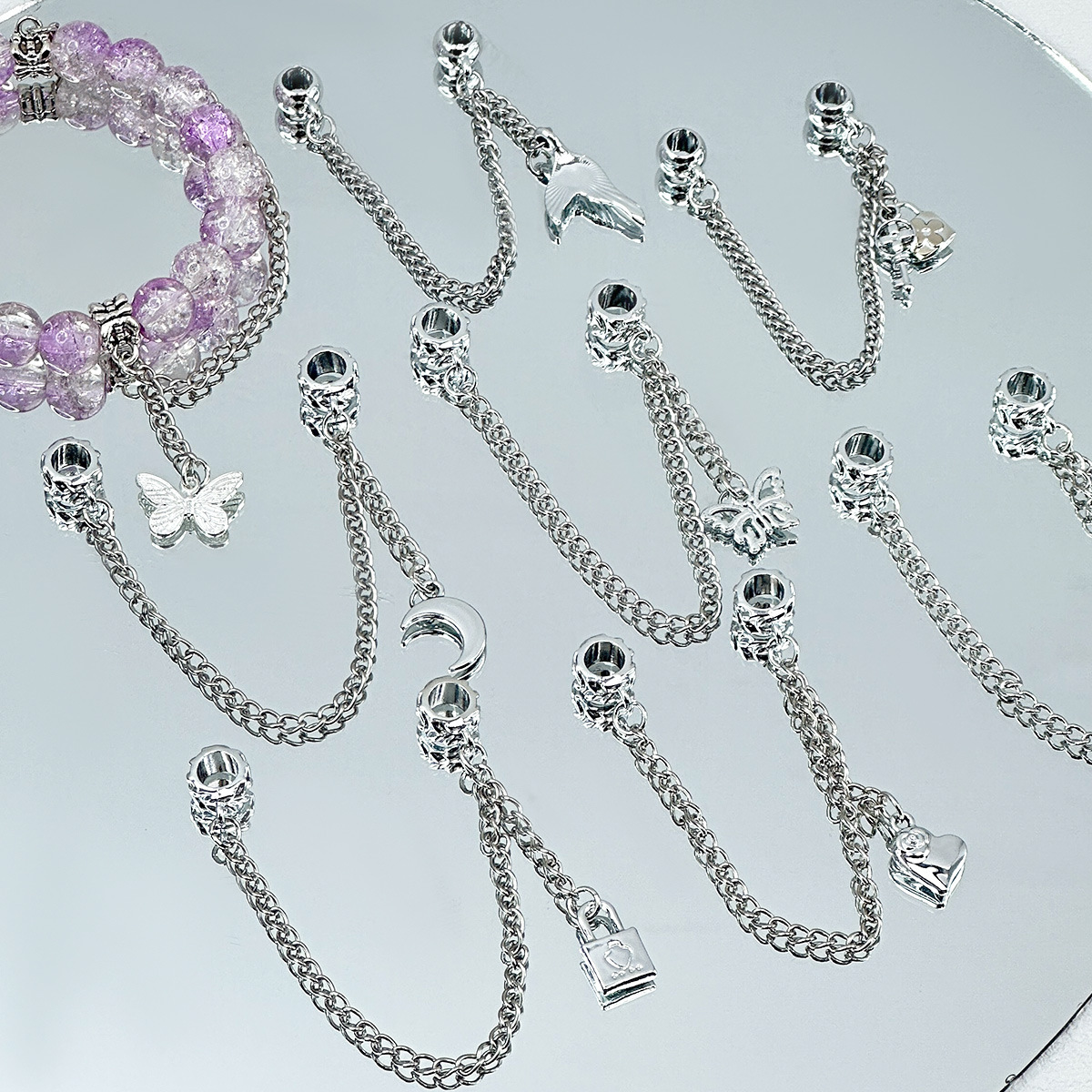金属diy蝶月合金ペンダント愛銀飾りダブルペンダント手作りブレスレットネックレス材料アクセサリー