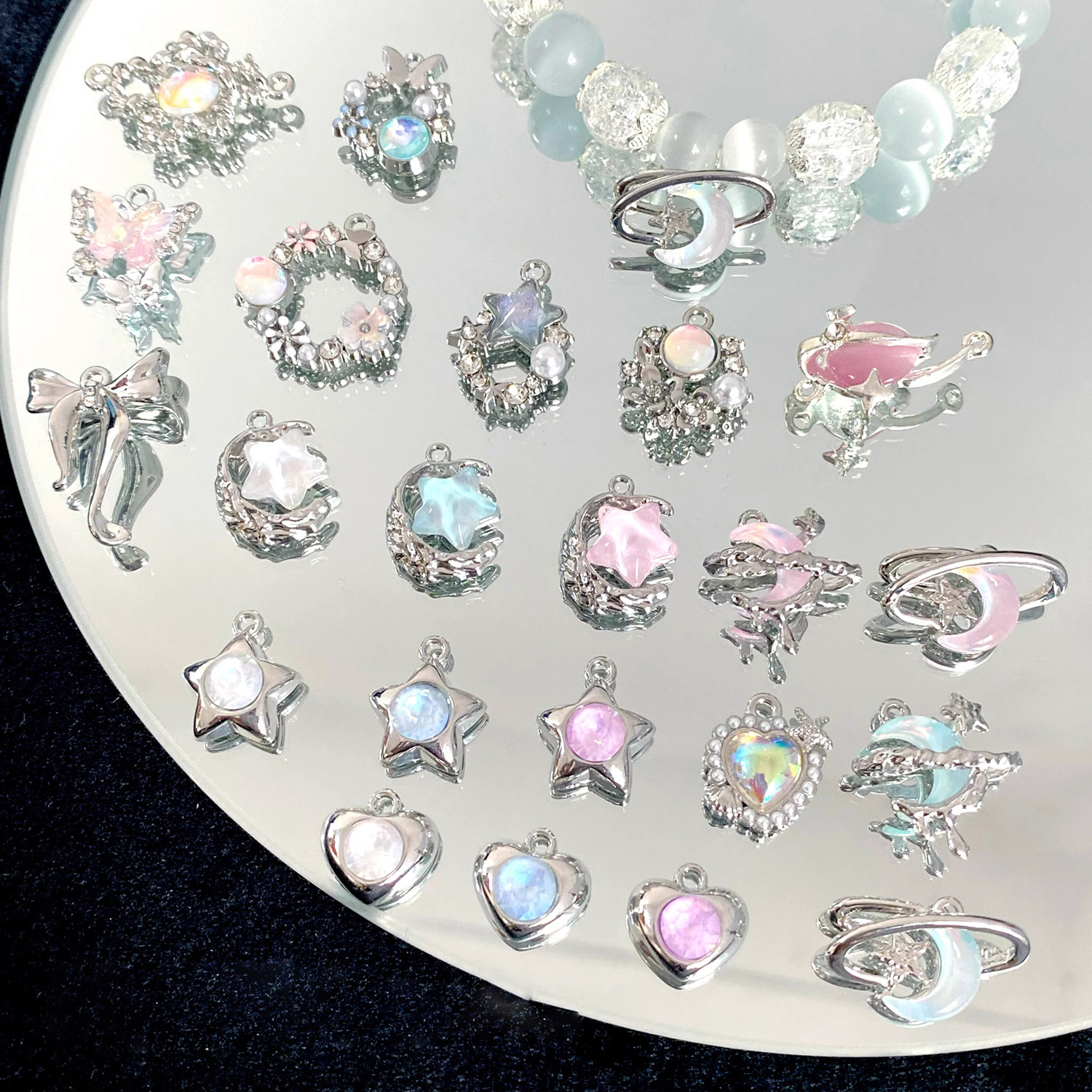清冷小衆高級愛さくらんぼ月合金ペンダントdiy手作りビーズネックレスブレスレット材料部品