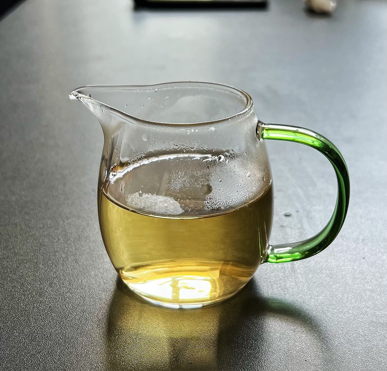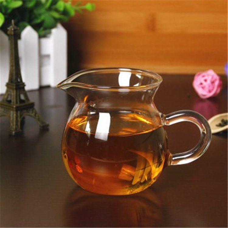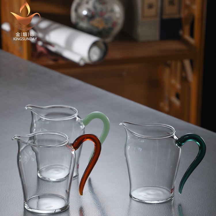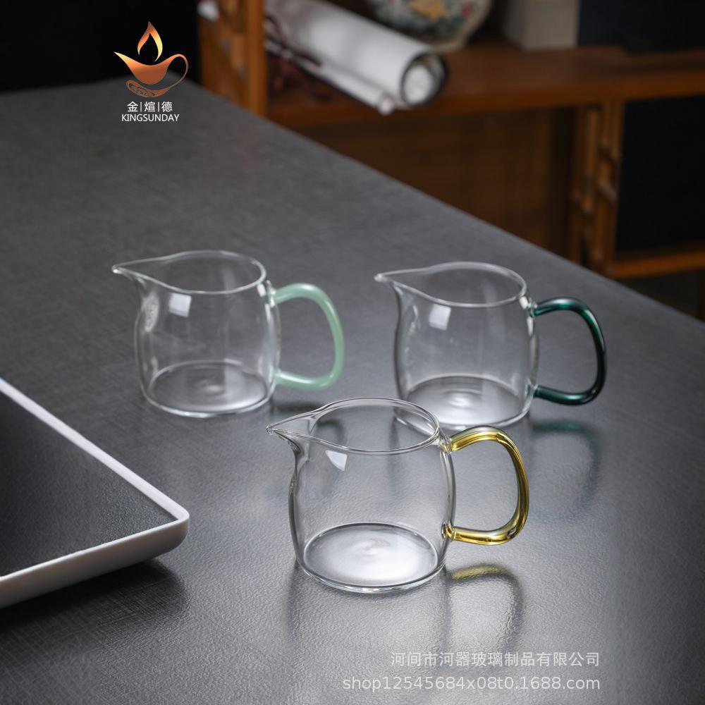 耐熱高硼珪酸ガラス製の公道杯、カラーハンドル付き、茶葉均分カップ、茶器、公杯