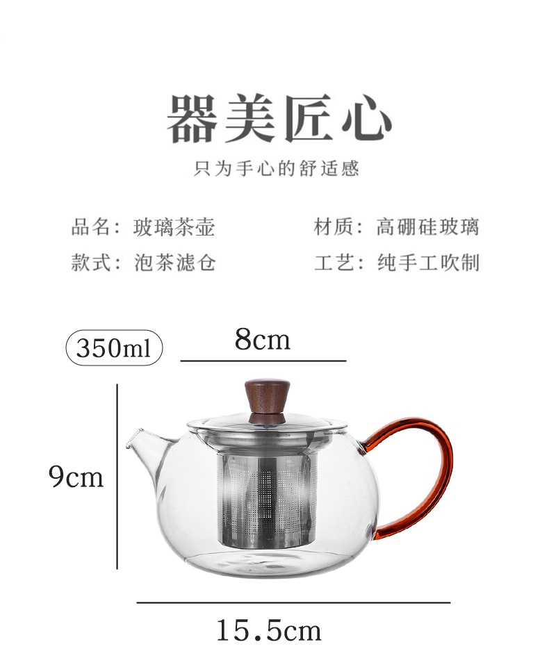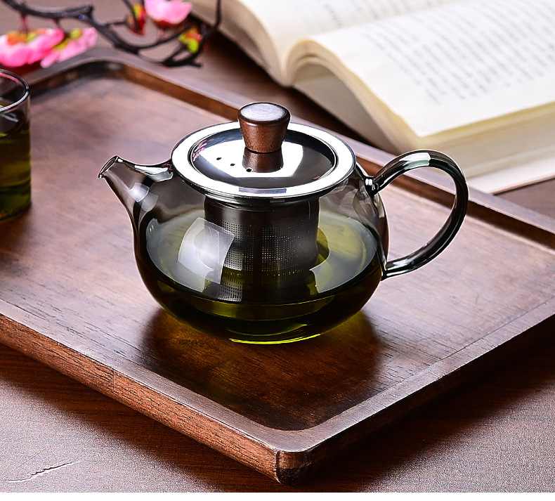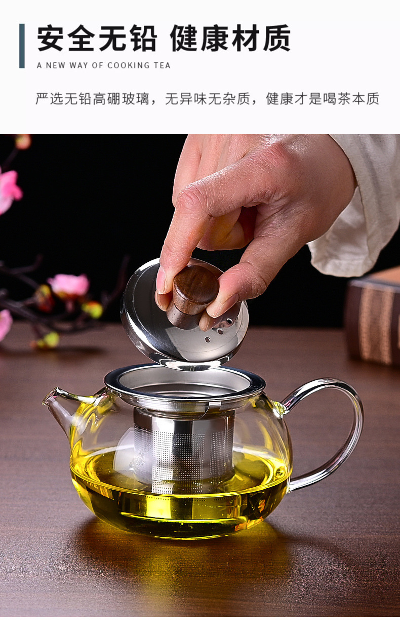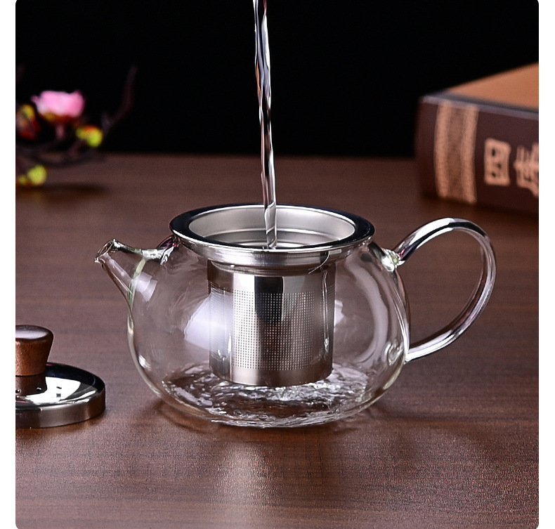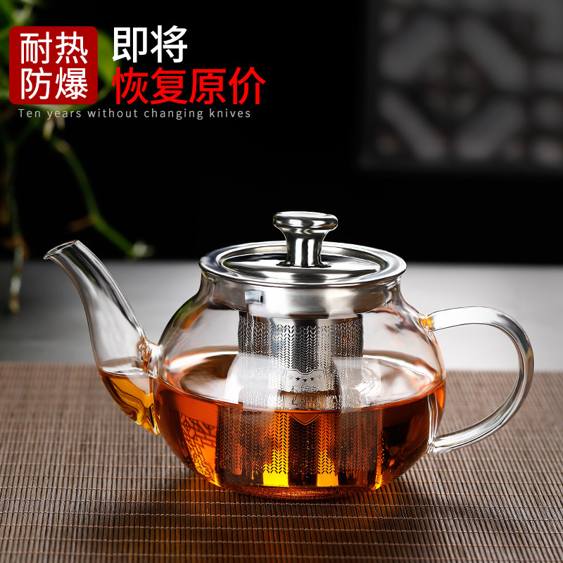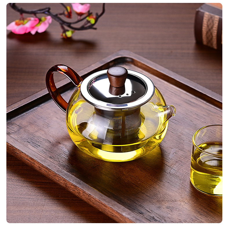 ガラスティーポット厚い泡ティーポットお茶分離ステンレスフィルター大容量シングルポット耐熱家庭用煮ティーポット
