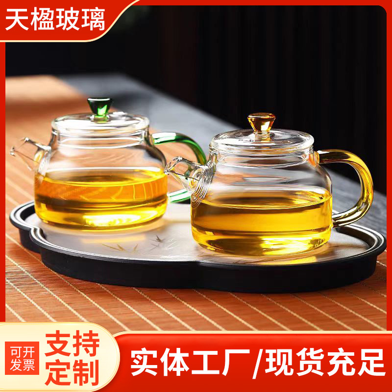 批发家用高硼硅玻璃泡茶壶小号彩把煮茶壶带过滤功夫茶壶茶水分离