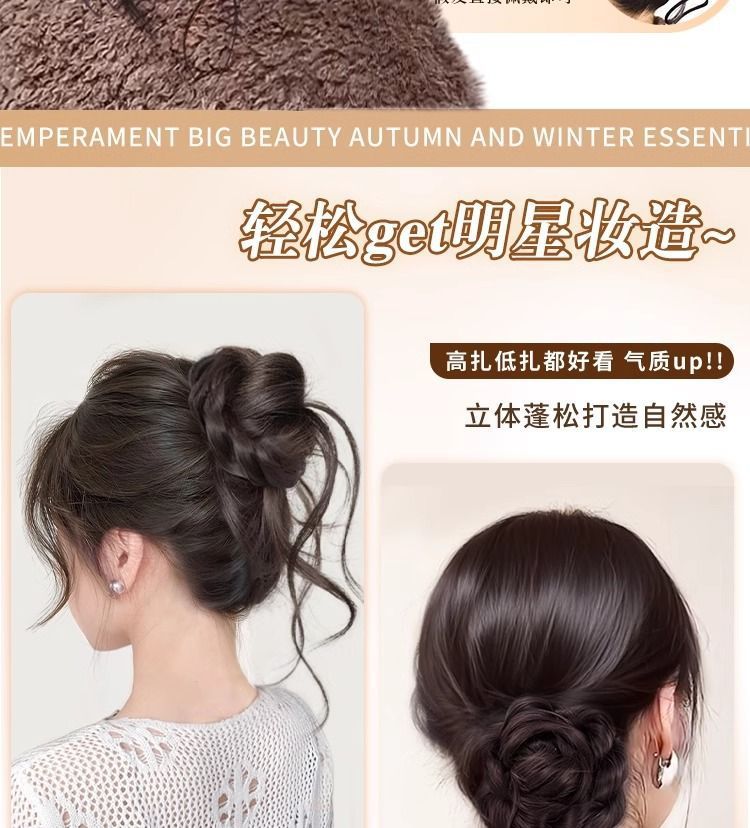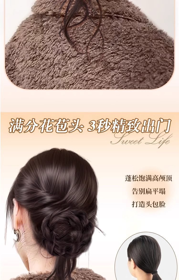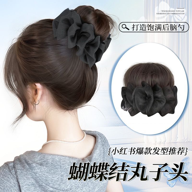 抓夹丸子头假发女高扎花苞蝴蝶结丸子头增发量懒人盘发神器花苞头