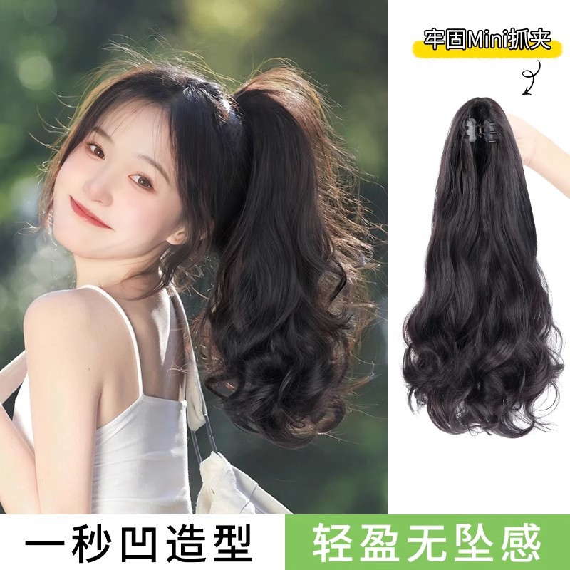 抓夹人鱼卷瀑布马尾假发女抓夹式仿真发蓬松高颅顶增发量假马尾辫
