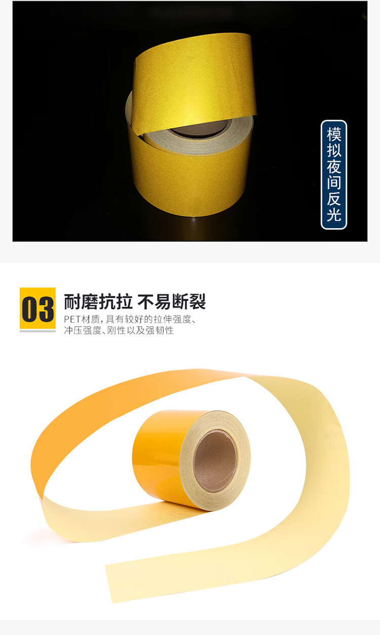 趣味行黄色反射条警告反射テープ5cm長さ45メートル安全警戒区分隔離壁貼り