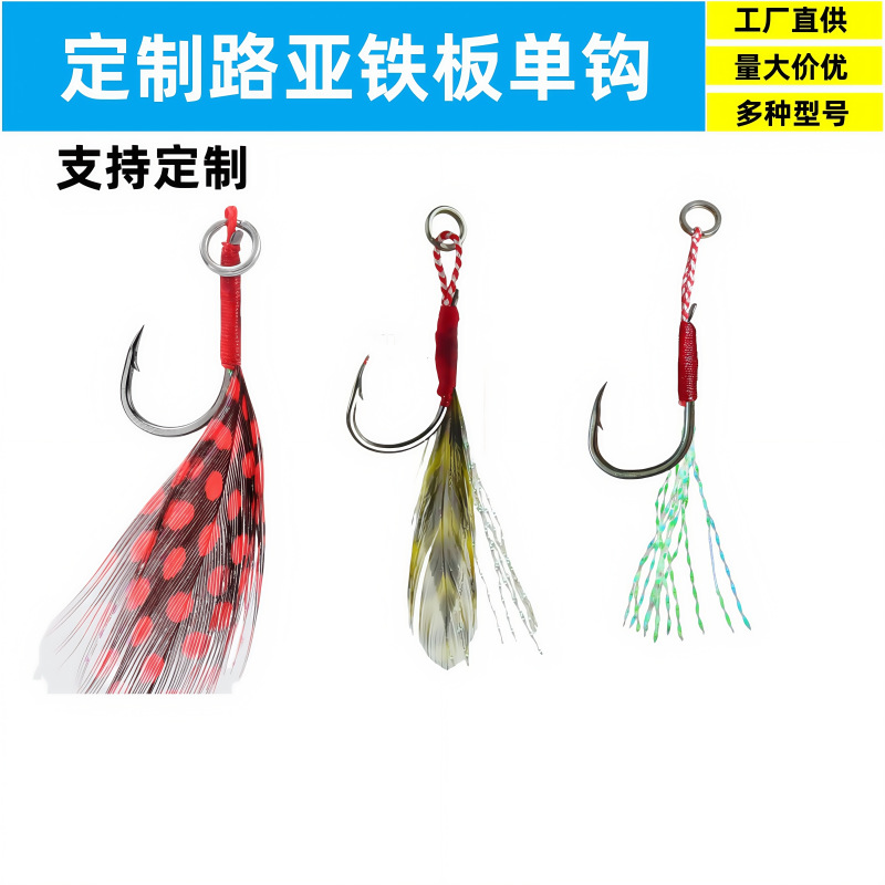 路亜単フック鉄板亮糸鉄板フック羽フック真珠毛海釣り線単フック改造鉄板海釣りフック