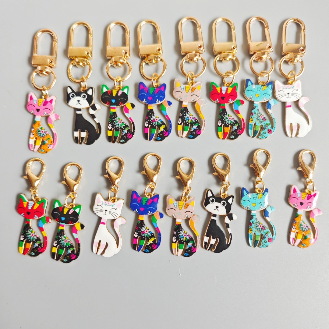 クロスボーダー亜鉛合金キーホルダーストラッププリントかわいい漫画猫ペンダント衣装キーチェーン装飾品
