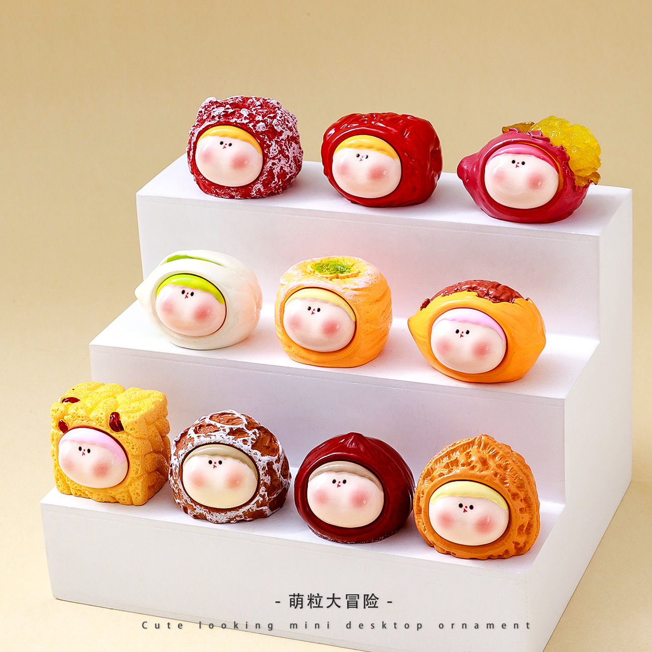 かわいいおせちのナッツの砂糖漬けシリーズの萌え粒の子供の樹脂のデスクトップの小さい置物は生放送します。