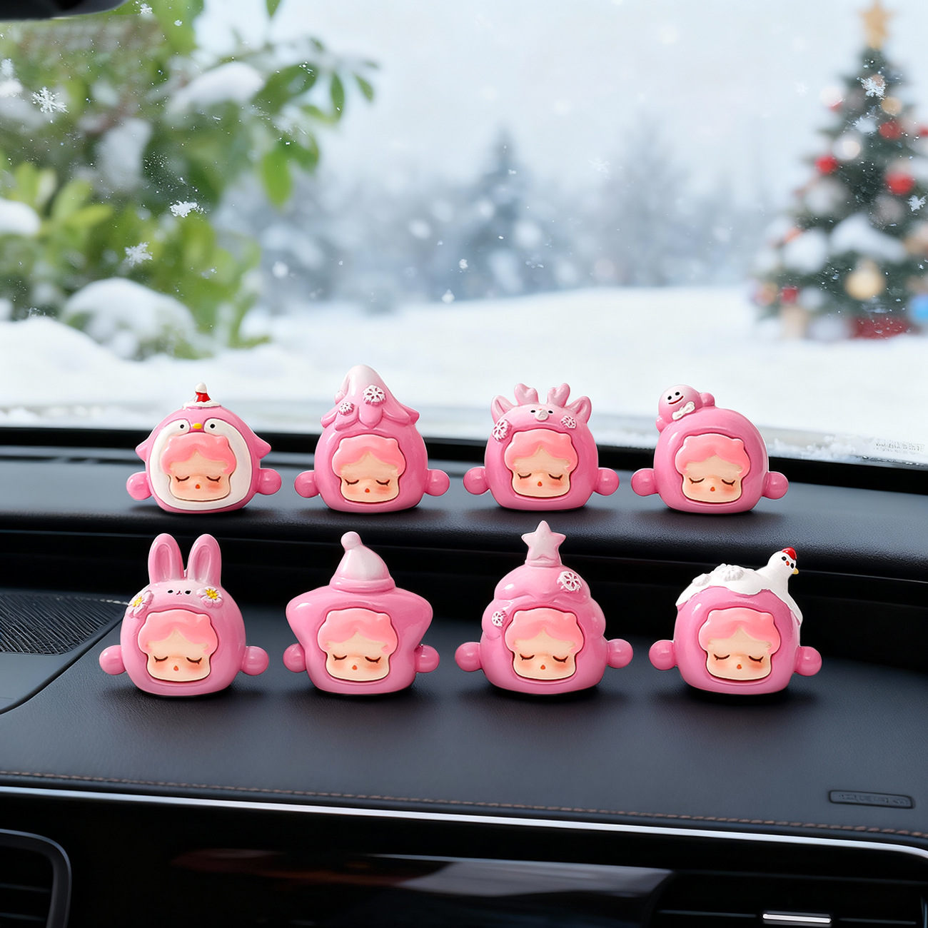 ピンクの冬のかわいい人形樹脂工芸品キーホルダーデスクトップ小さな装飾品ライブブロードキャストペアブラインドバッグ卸売