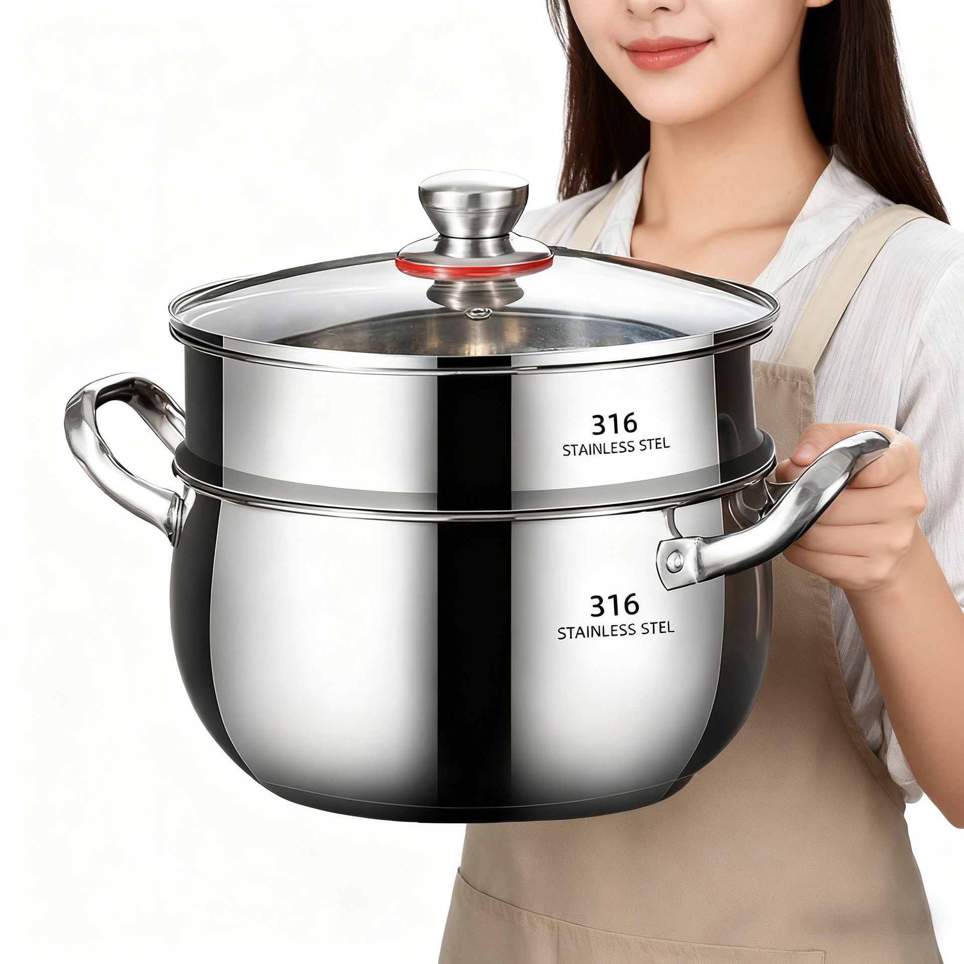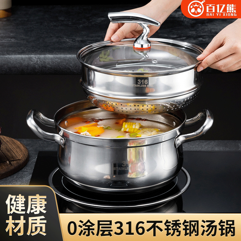 316ステンレス蒸し器家庭用厚い蒸煮一体二重蒸し器食品級電磁炉スープ鍋蒸し器付き